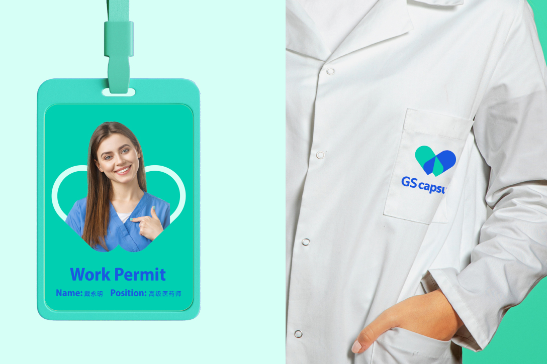 品牌的整体设计概念胶囊中来,图形标志既是胶囊也是爱心,在表达品牌行业属性的同时也象征着健康与关爱,心之间的交叠同时代表着合作与团结。升级后的品牌色打破了原先比较沉闷的深蓝深绿色,重新选用更加年轻化、国际化的蓝色和绿色,营造出轻松感和国际化氛围。