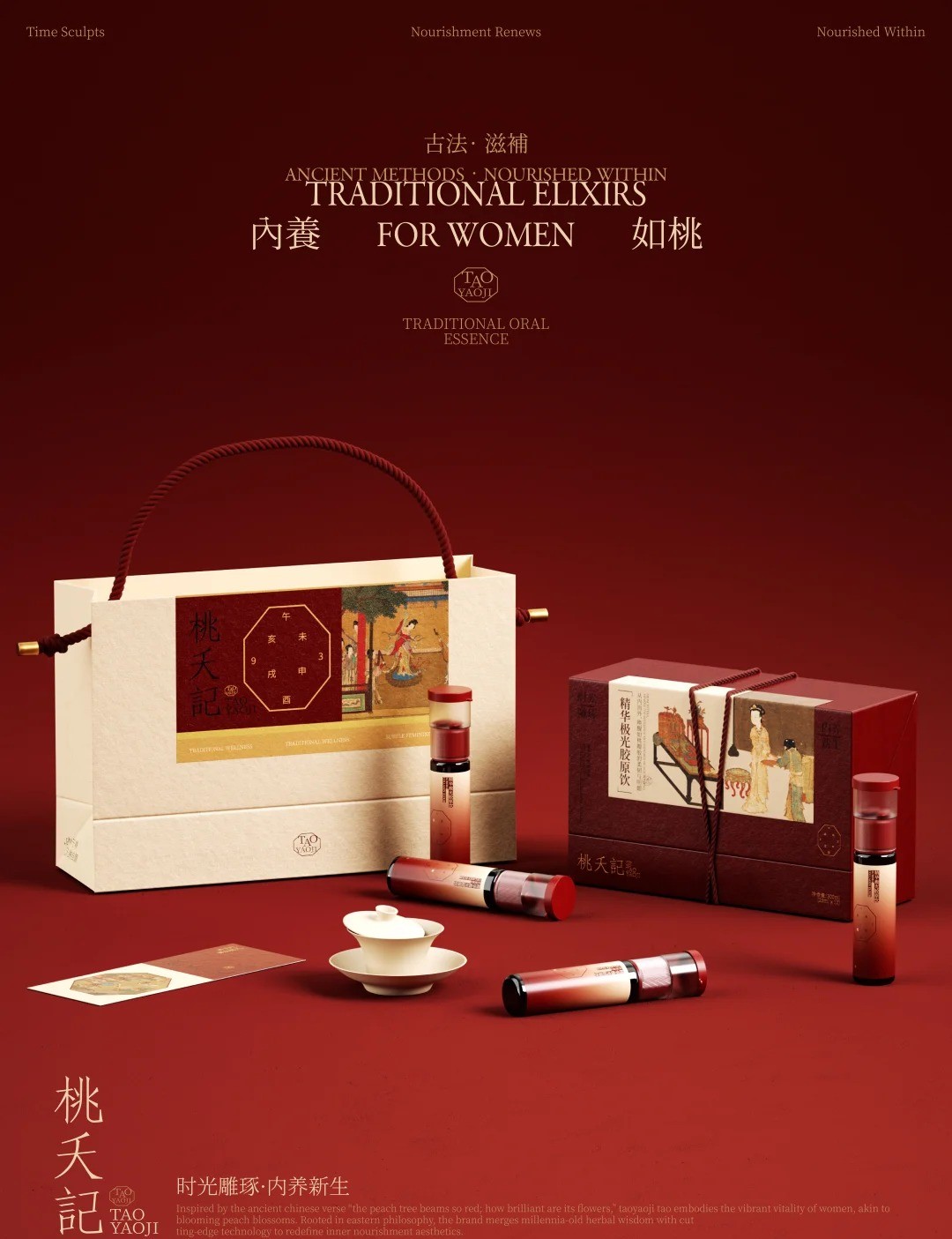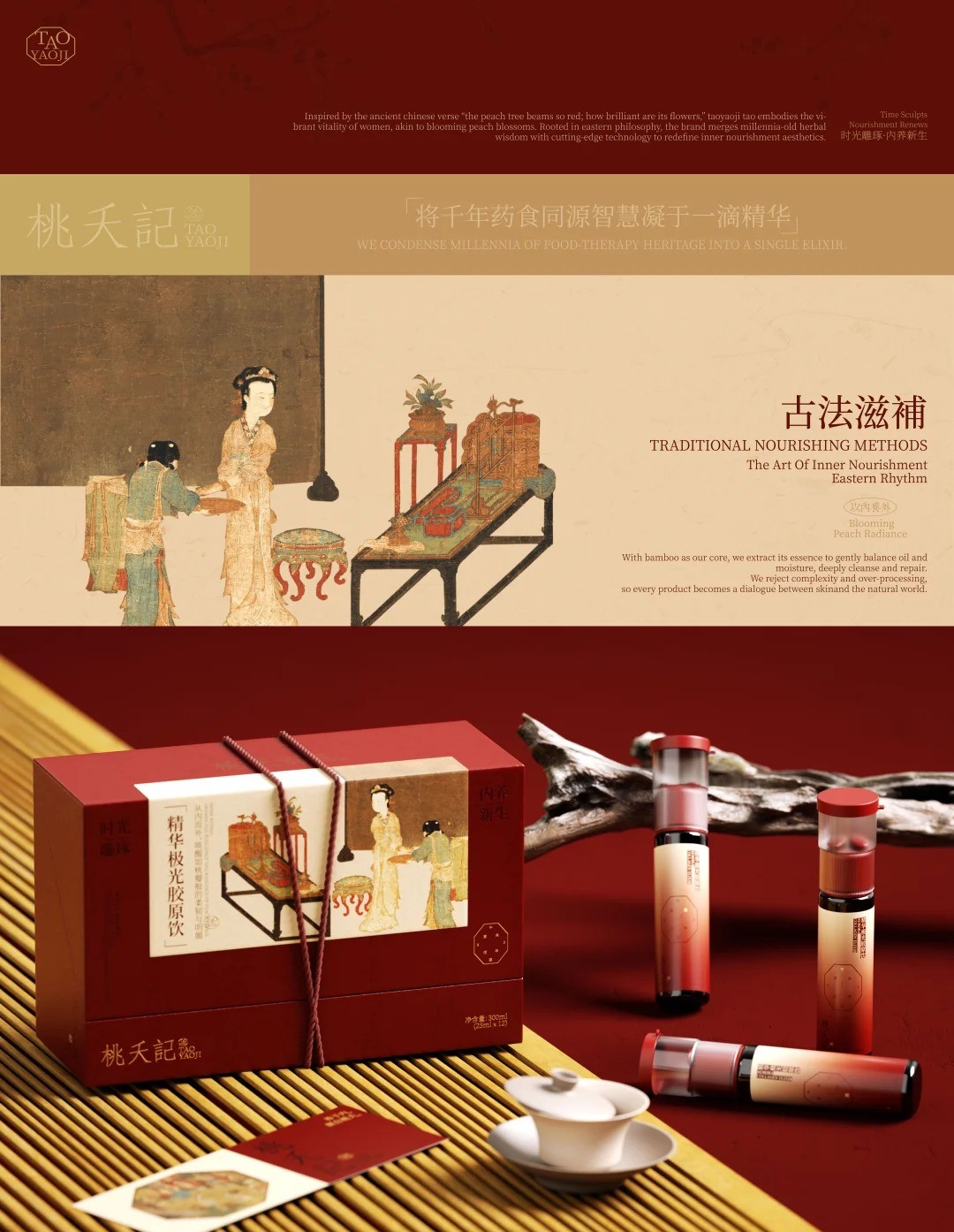 「桃夭记」是一个传承东方智慧、诠释现代内养美学的的女性口服美容品牌,致力于让每一位女性都能如桃花般健康、明媚、自如绽放于生命的每个阶段。 2025年,中国口服美容市场进一步扩张,线上渠道已成为品牌角逐的核心战场。因此,「桃夭记」此次品牌升级,旨在以独特的视觉语言,qiang占市场先机成为本次品牌升级的主要目的。