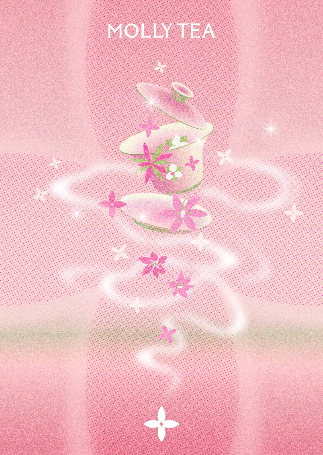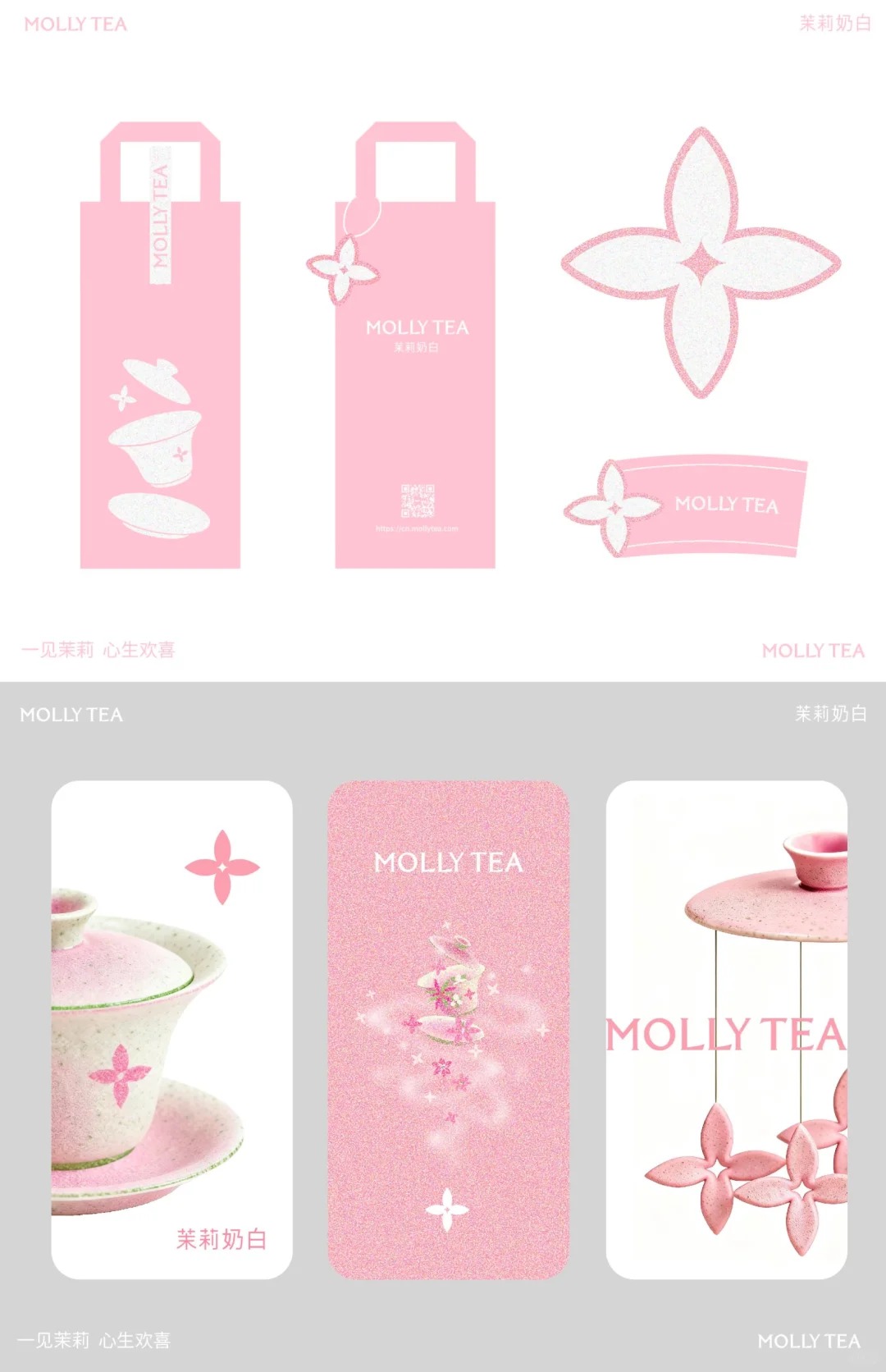 给茉莉奶白设计了一套粉色的视觉设计图案
