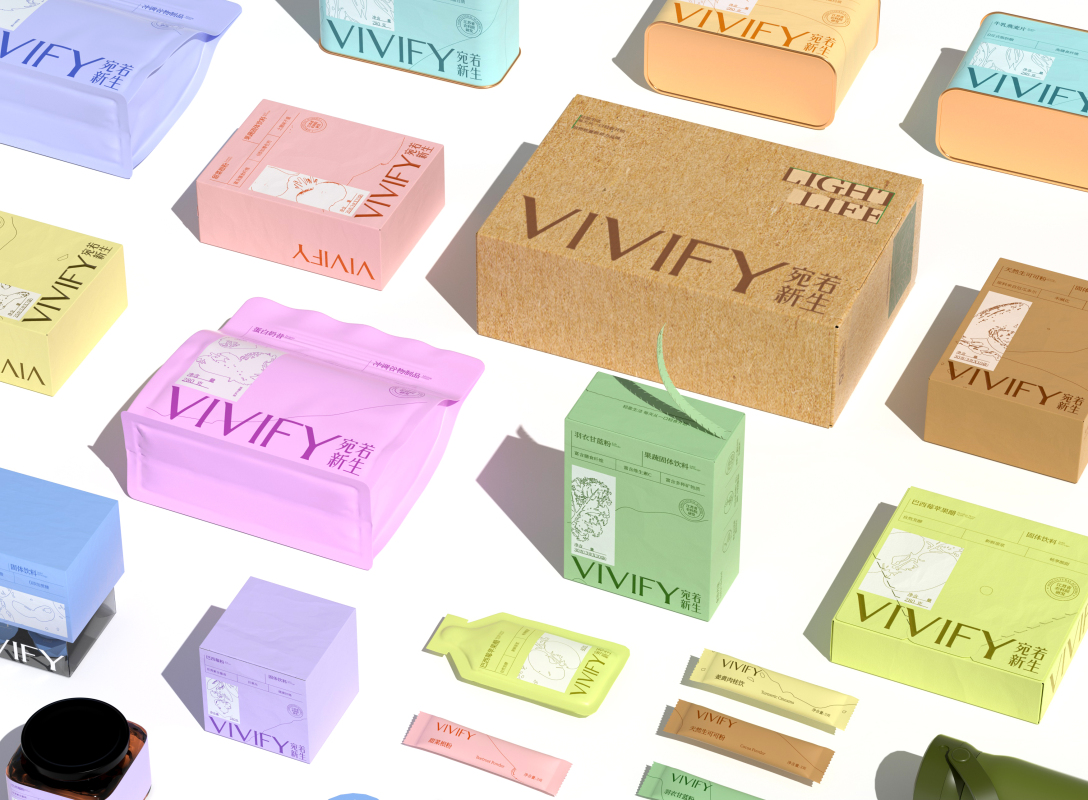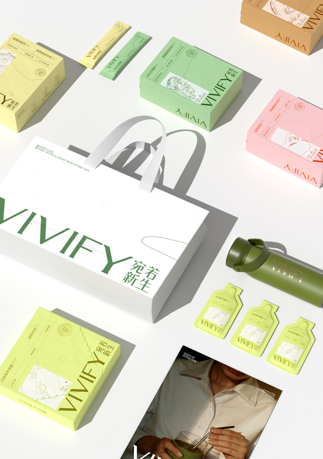 轻简质感:包装用低饱和莫兰迪色系+简约插画,体现"简约不简陋、轻量有质感"的设计风格 自然治愈:插画元素(植物、轻盈线条)+柔和色彩,传递"天然、无负担"的产品感知