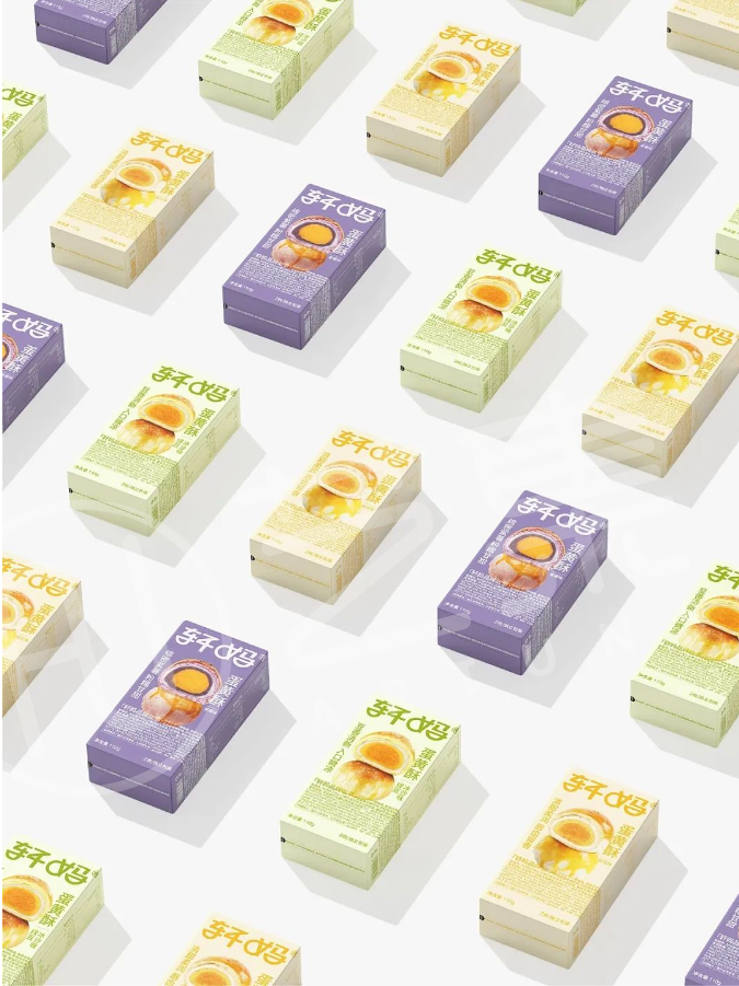 此次的品牌焕新,着重将整个设计视觉变得更加简洁、年轻、时尚,为品牌建立焦点。首先在版面设计上,以“轩妈”为核心,将品牌标识做放大处理,占据视觉重点,有力地传达品牌基因和概念,让人看见便能记住“轩妈蛋黄酥”这一产品名片。