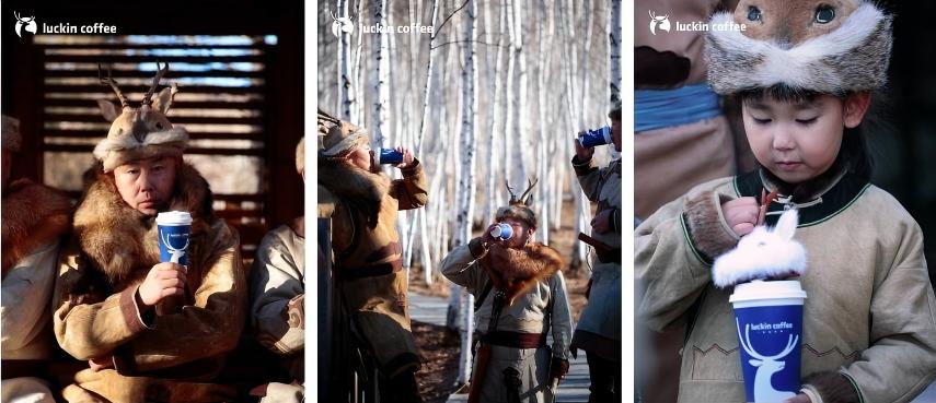 昨天,瑞幸找到了最近网上因“坐飞机戴狍角帽”而走红的鄂伦春族大叔们,并进行了代言合作。
