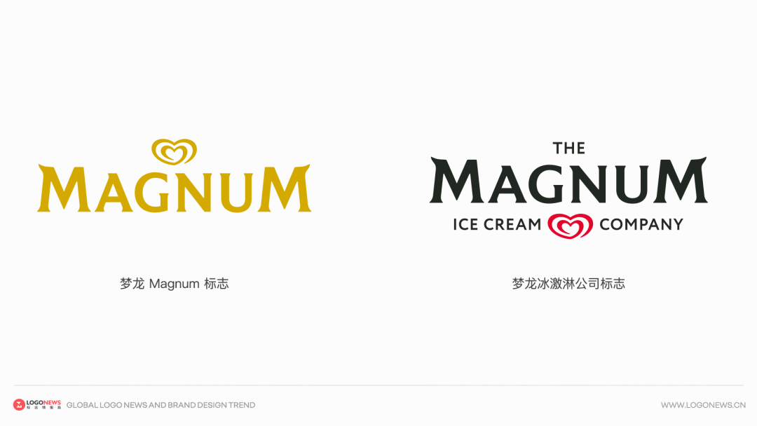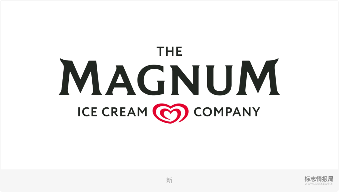 随着独立上市,梦龙冰淇淋公司同步发布了全新的企业标志。相较于原有的 Magnum 金黄色品牌标识,公司的新标志则采用更加稳重、现代的黑色字标,与消费品行业常见的产品化表达拉开距离,强调公司层面的独立性。另外,Magnum 经典的心形符号继续作为核心视觉资产保留,并被置于「ICE CREAM COMPANY」之间,成为连接公司与其 Heartbrand 品牌体系的视觉纽带。