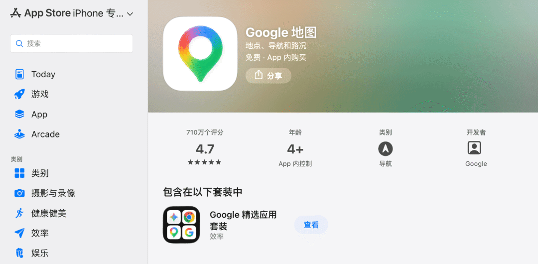 Google地图(Google Maps)于2005年正式上线,是Google公司向全球提供的电子地图服务。地图包含地标、线条、形状等信息,提供矢量地图、卫星照片、地形图等三种视图。目前在全球多国开通了街景服务,用户可以通过由Google金龟车在街道上拍到的影像查看街景。