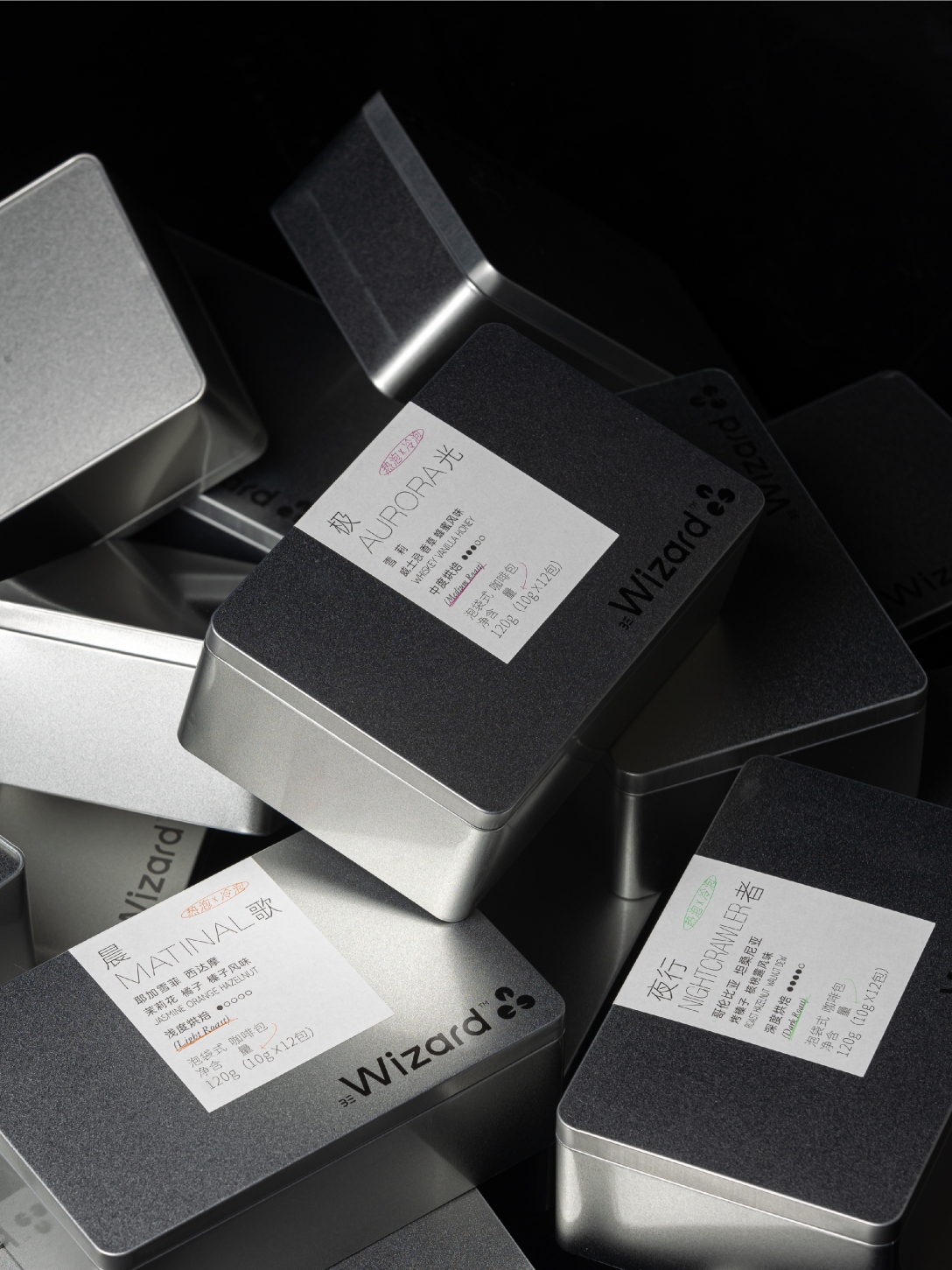 截取巫师帽子的剪影,将其简约化、平面化,共同组成品牌Logo。在包装设计上,以“巫师”的卡通形象IP为主体,用简约的线条勾勒出人物形状,想要表达从慵懒中延伸出生命力的感觉。同时,品牌延展的形象是骑着扫把的小巫师不同的神态与动作,意在放大视觉上“萌”且“灵动”的观感,使“巫师”进入消费者的生活。