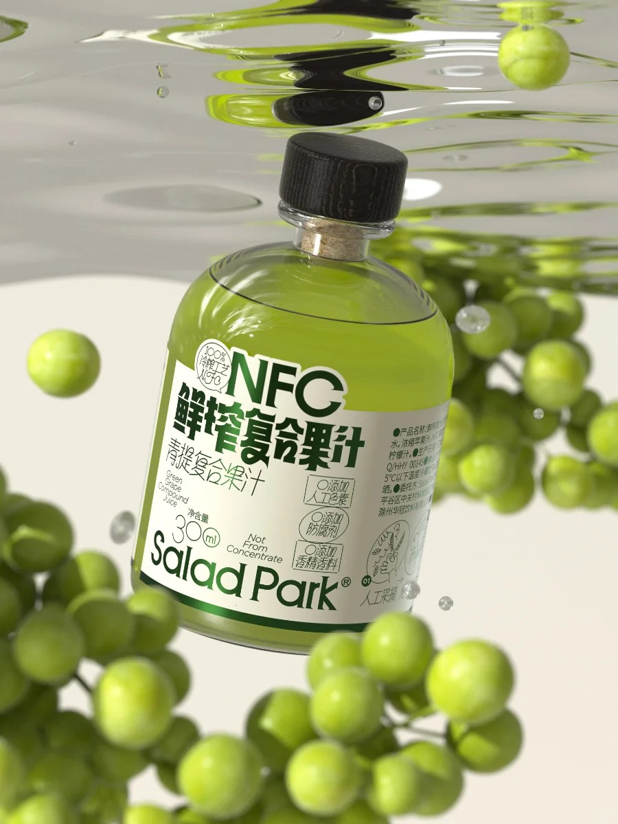 通过运用鲜明的色彩、简洁的线条以及独特的视觉效果,吸引消费者的注意力,并传达出产品的高品质与独特性。本设计采用绿色、红色、橙色、黄色和白色等鲜艳色彩作为瓶身的主色调,这些色彩不仅代表了不同种类的水果,还营造出一种活力四射、清新自然的氛围。