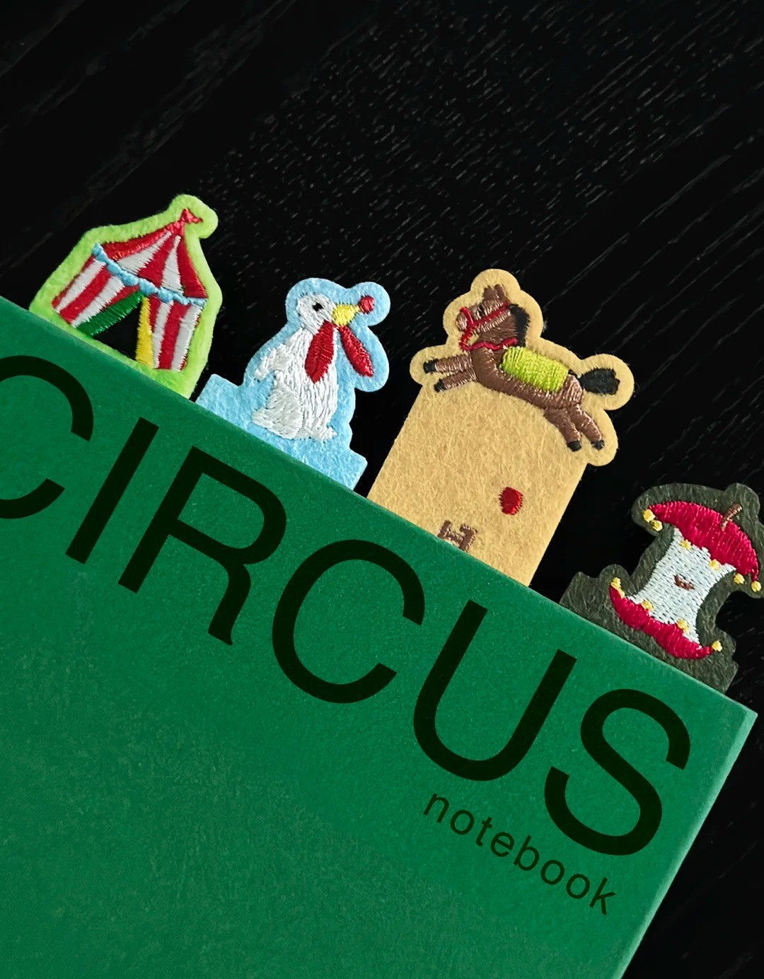 阅读生活中的美学好物,毛毡材质,马戏团房子、魔法小兔、旋转木马、被偷吃的苹果图案,做了精美的刺绣,为读书日常增添一份自然与治愈的陪伴。