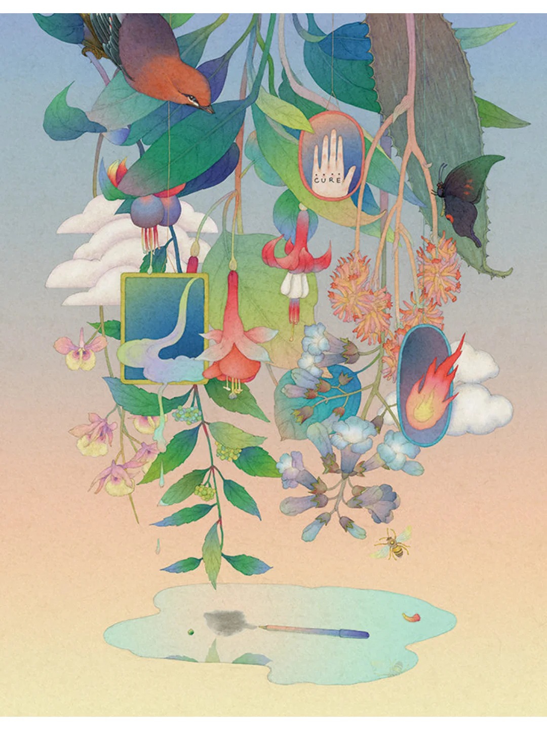 观赏Whooli Chen(陈狐狸)的作品,宛如踏上一段奇幻的叙事旅程,这不足为奇。她不在创作图像时,便沉浸在文学世界里;而放下书本后,又常与音乐相伴。这位扎根于台湾的艺术家,其插画创作以细腻而精致见长。