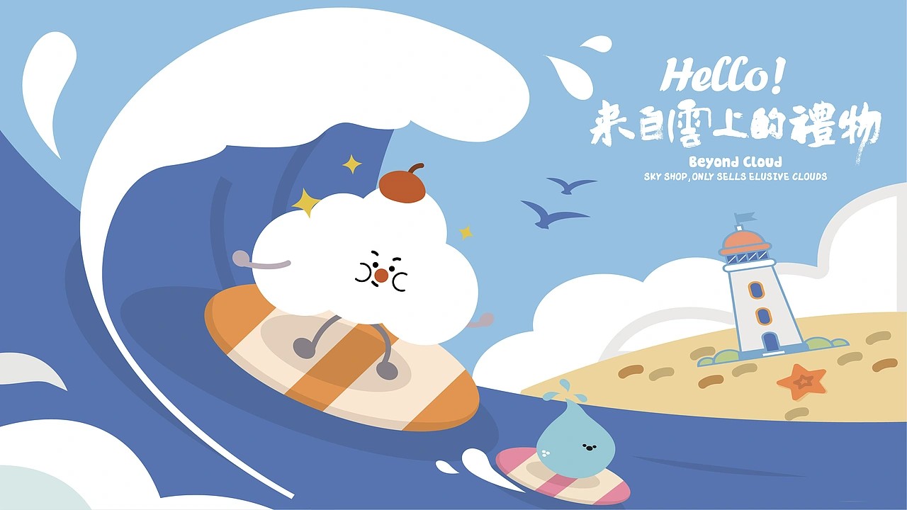 主题形象释义 主题形象围绕云作为基础元素进行设计,表达一种慵懒、慢生活的理念,胖乎乎的身体和呆萌的表情能够拉近与用户之间的距离,长长的手臂好像随时可以给人一个大大的拥抱,同时吞并一切烦恼,释放快乐。