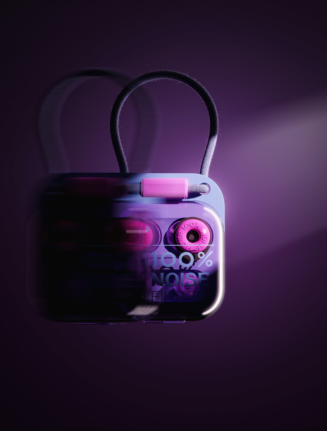 这款物理降噪耳塞的设计,是一场关于“材质、形态与人体感知”的纯粹对话。我们摒弃了电子方案,专注于挖掘被动降噪的物理潜能。材料上选用超柔软医疗级硅胶,材质本身即是降噪的第一道防线。;硅胶套则凭借其优异的弹性与贴合性,实现持久稳固的密封。材料的多孔或复合结构,能高效吸收、耗散声波能量,显著衰减环境噪音,尤其擅长应对持续性中低频侵扰。手提包的外观造型,透明的彩色外壳,将产品“饰品化”,提升产品的潮流属性;“甜甜圈”+“立体字”是耳塞设计,让耳塞更具青春活力。
