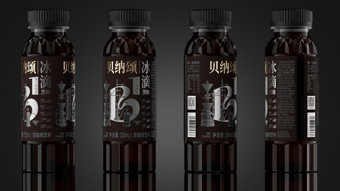 以冰滴咖啡制作器具的线稿图案为核心元素,直观地展示了产品的独特工艺,增强了消费者对产品品质的信任感。线稿图案简洁而富有设计感,既体现了传统咖啡文化的底蕴,又符合现代消费者对简约美学的追求。