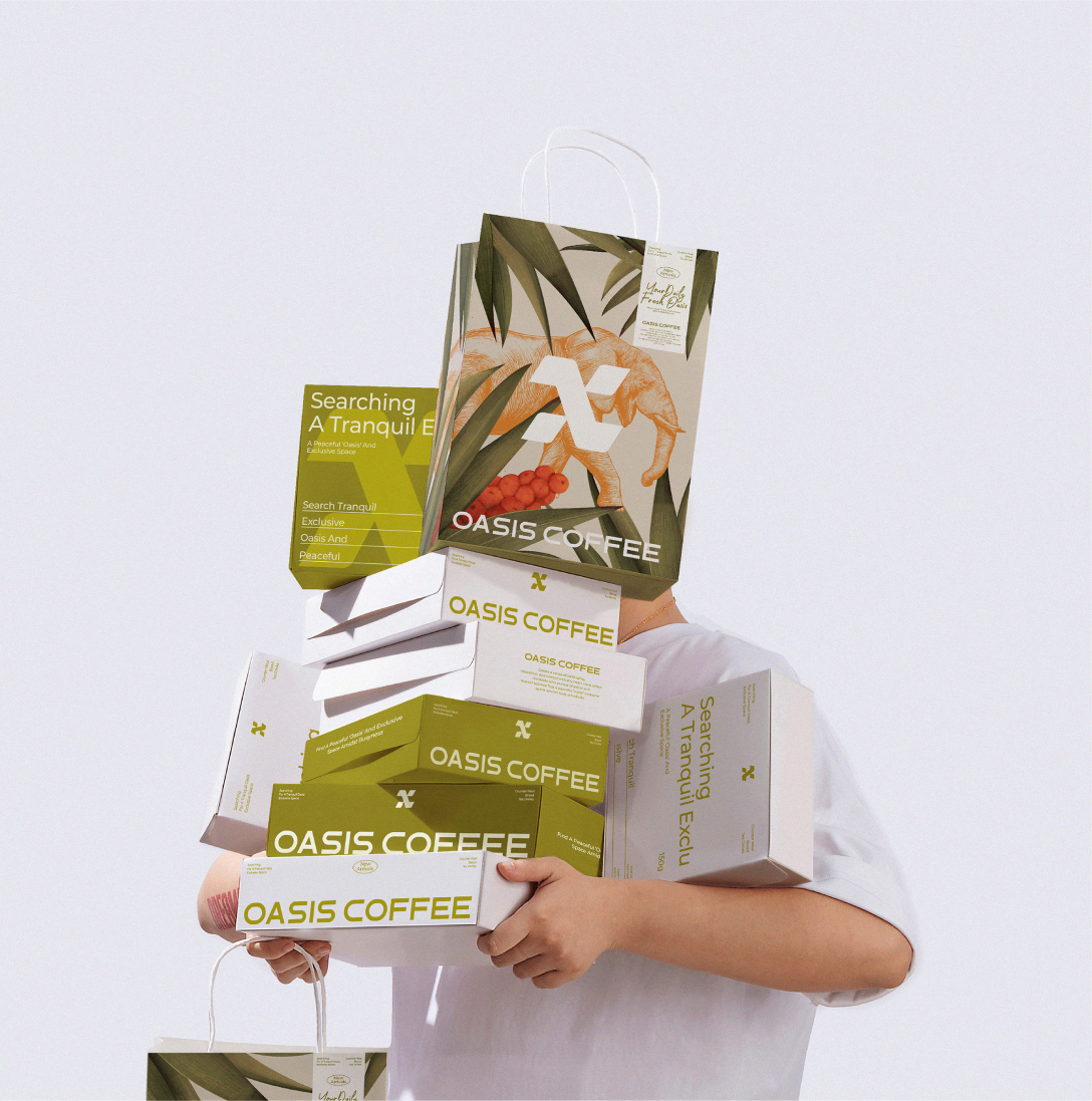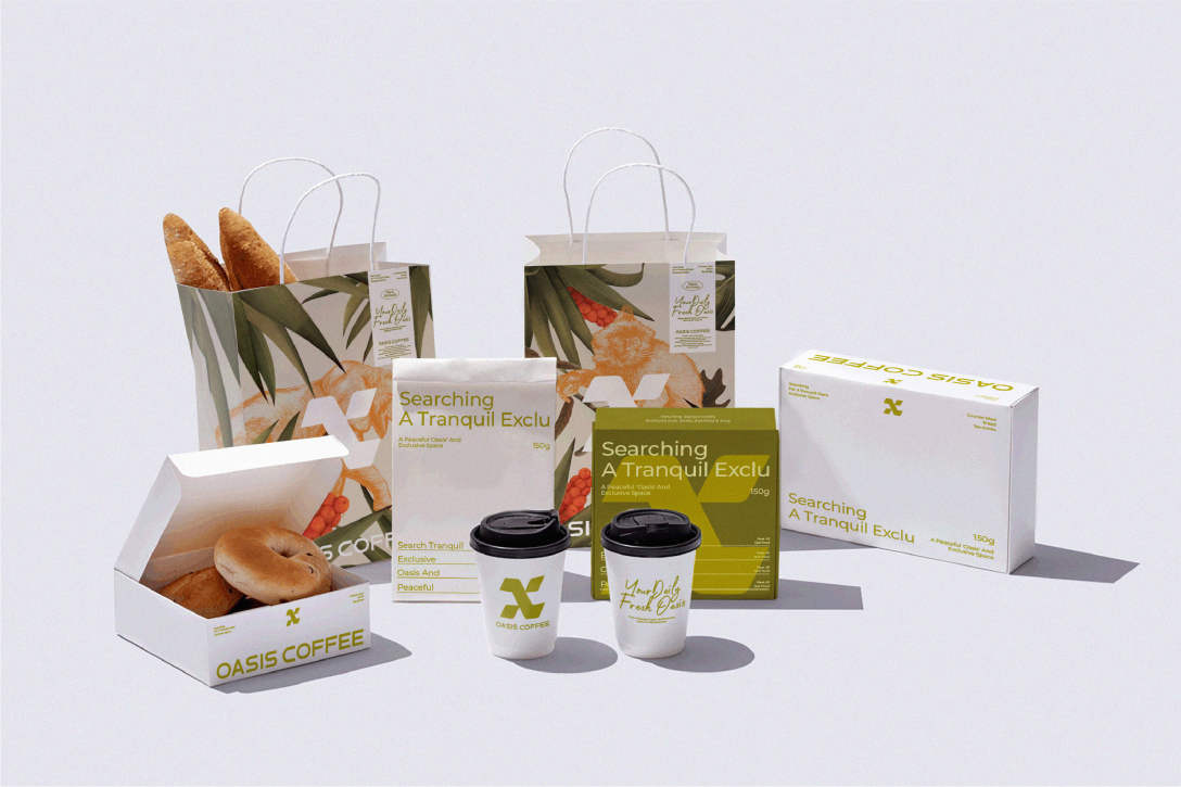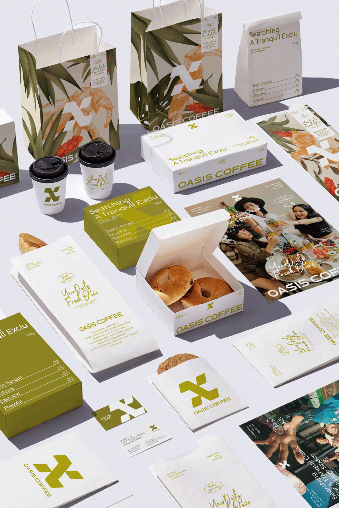 在品牌应用图案中,大量运用了自然元素,如绿叶、植物果实等。这些图案以手绘风格呈现,线条简洁流畅,富有艺术感和亲和力。它们不仅装饰了包装和宣传物料,更强化了品牌与自然的联系,让消费者在视觉上就能感受到自然的氛围,仿佛置身于一片绿意盎然的咖啡绿洲之中。
