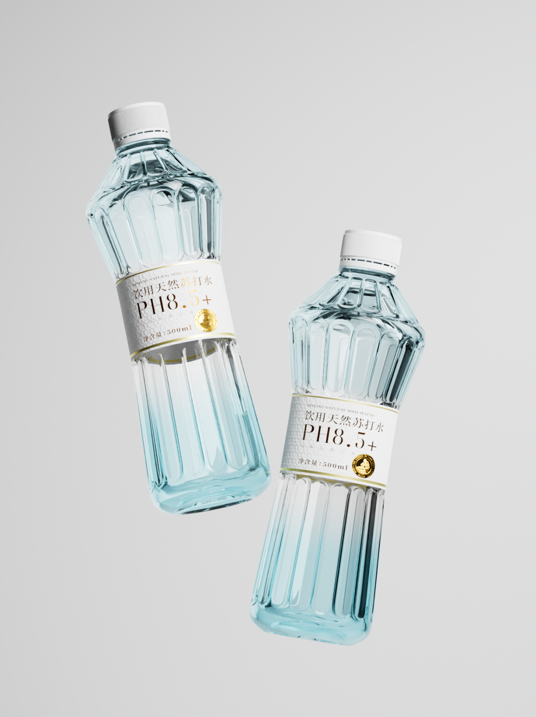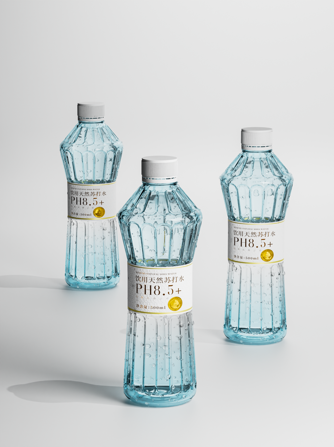 选用经典的透明玻璃瓶瓶型,线条流畅且富有韵律感。玻璃材质不仅安全环保,能够很好地保证苏打水的品质不受外界污染,而且其通透的质感可以清晰展示苏打水清澈的色泽和细腻的气泡,给人以纯净、天然的直观感受。瓶身的竖条纹设计增加了瓶体的立体感和握持时的摩擦力,既美观又实用。