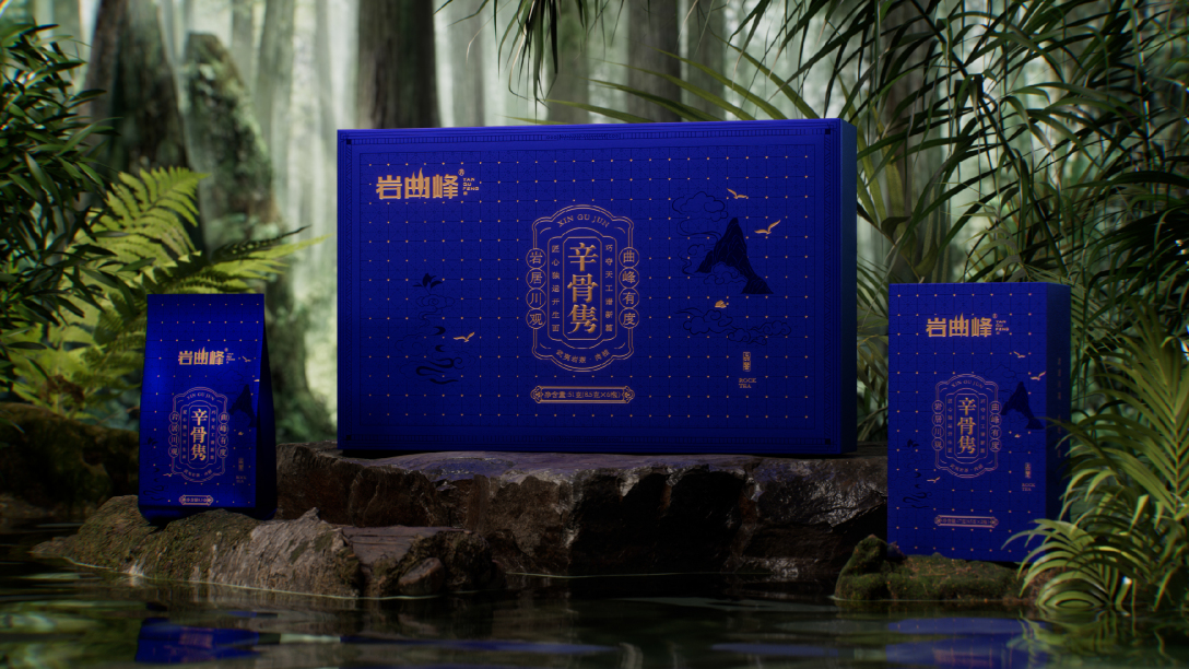 以“辛骨隽”品名为主体概念,以中式风格为基调,融合传统与典雅之美;以山峦与祥云点缀,营造出一种宁静而祥和的氛围,象征岩茶纯净与自然;田字格作为汉字书写规范模板,寓意岩茶制作的严谨与精细;色调选用深邃的蓝色,象征深沉与稳重,金色点缀,提升整体的尊贵感;感受 凹凸烫金工艺的应用,使得画面呈现更加立体,富有质感,彰显出产品的高端品质。