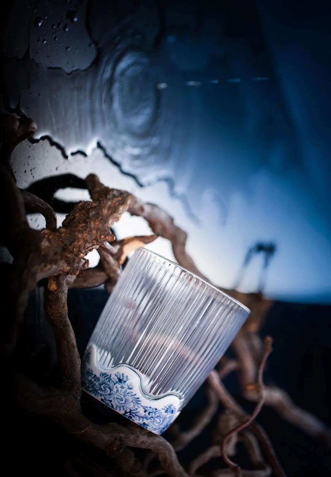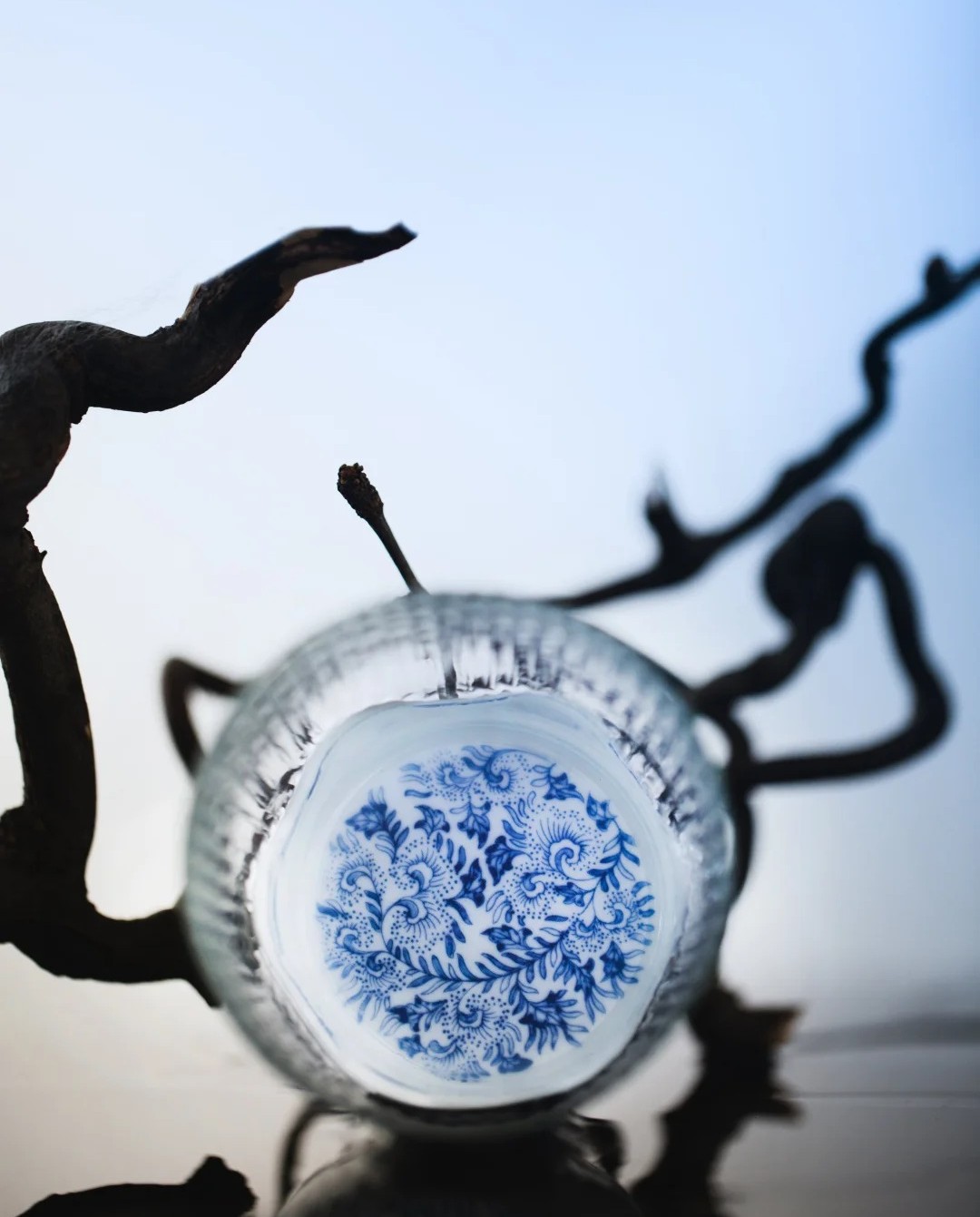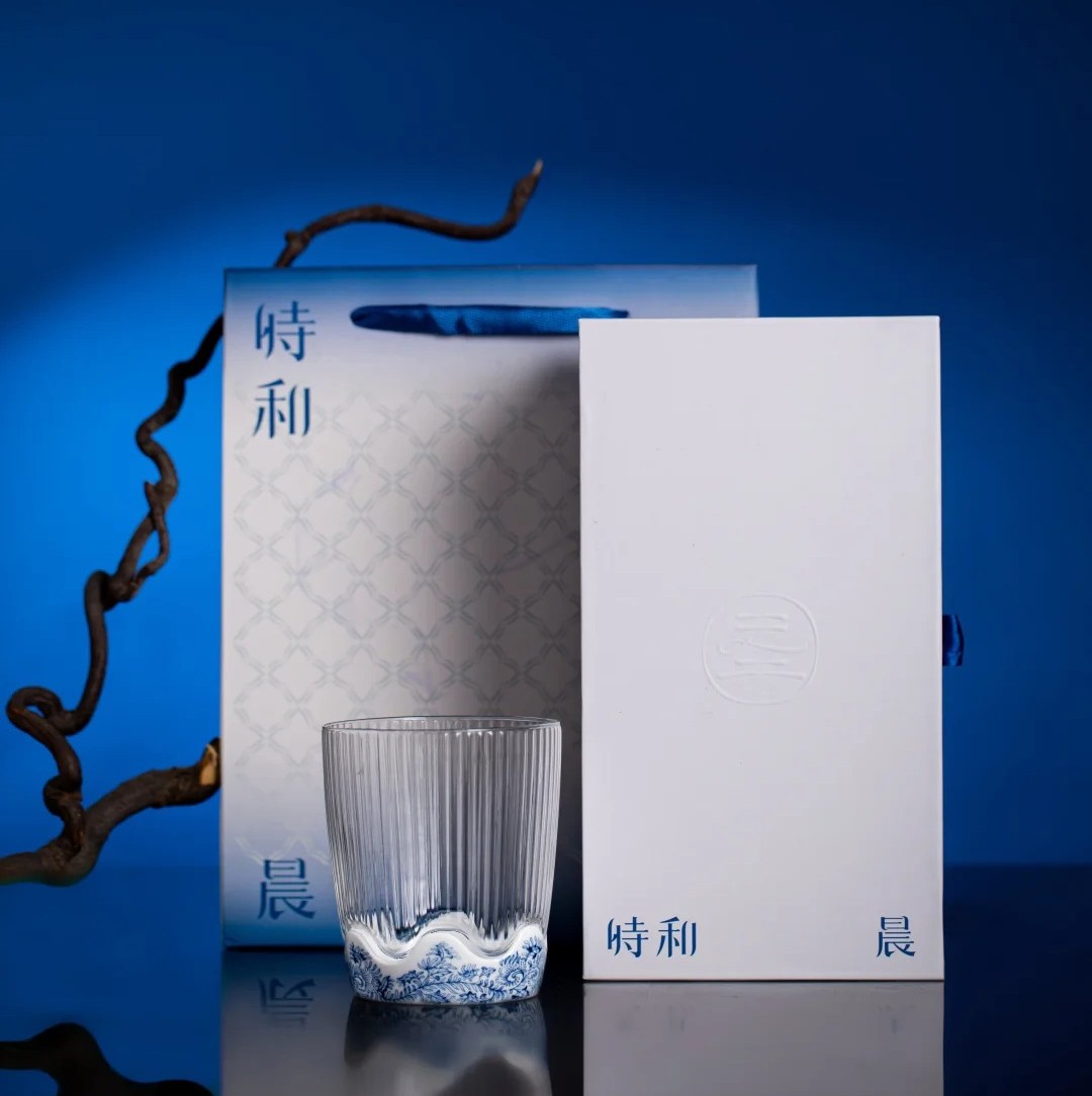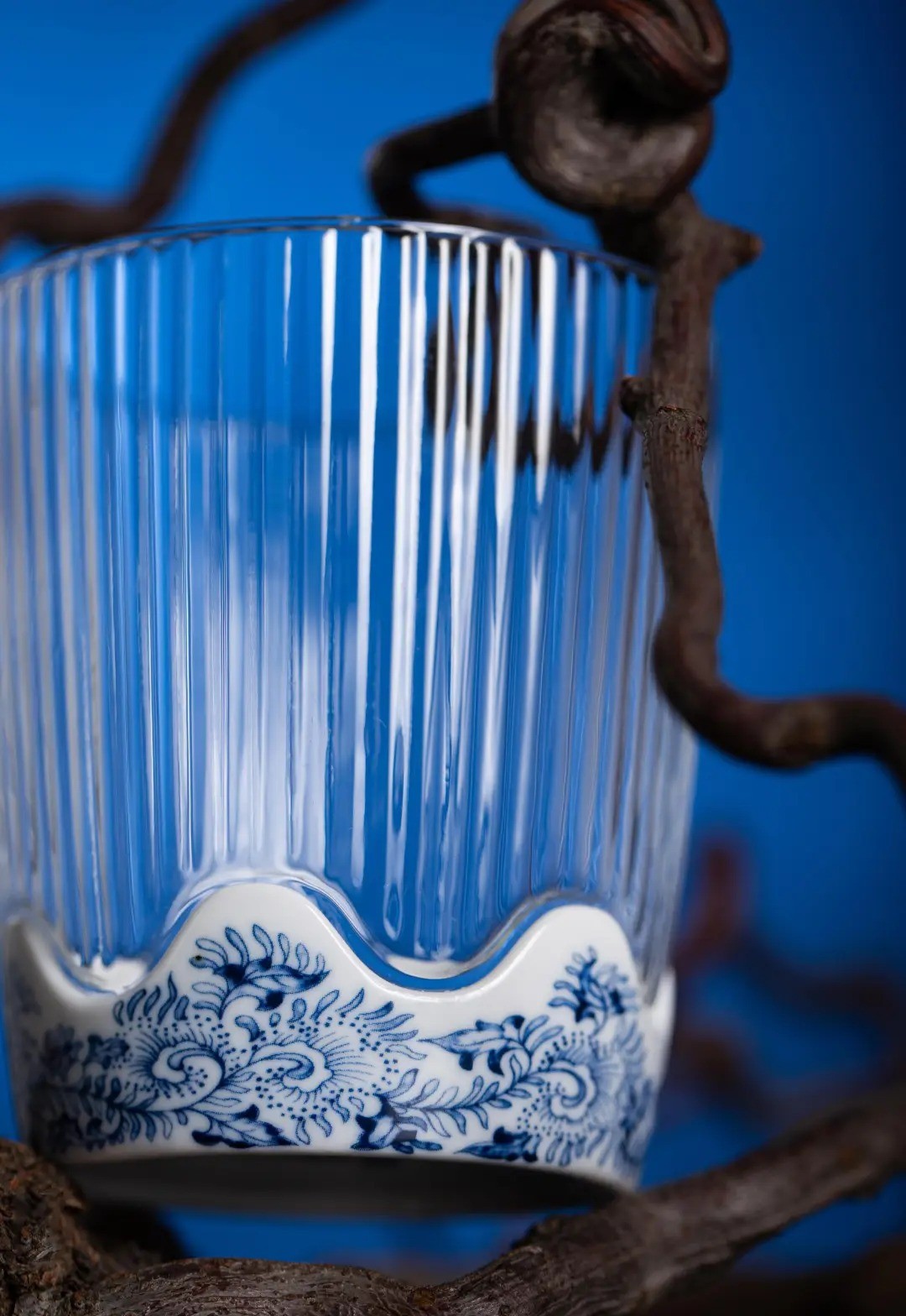 時和晨×於彩云老师的联名款玻璃杯,直接把景德镇青花的魂揉进了现代设计里 杯身是清透的竖纹玻璃,握在手里像攥着一捧月光;底部那圈青花是於老师的手笔——缠枝纹缠得细密又灵动,白瓷底衬着靛蓝,连杯底都印满了花纹(细节控狂喜!) 把茶/冰美式倒进去,玻璃的冷冽裹着青花的温润,喝的哪里是水,是「东方美学装进日常」的仪式感啊 摆在哪都是氛围感C位,拿来当花瓶插根枯枝都高级到离谱!