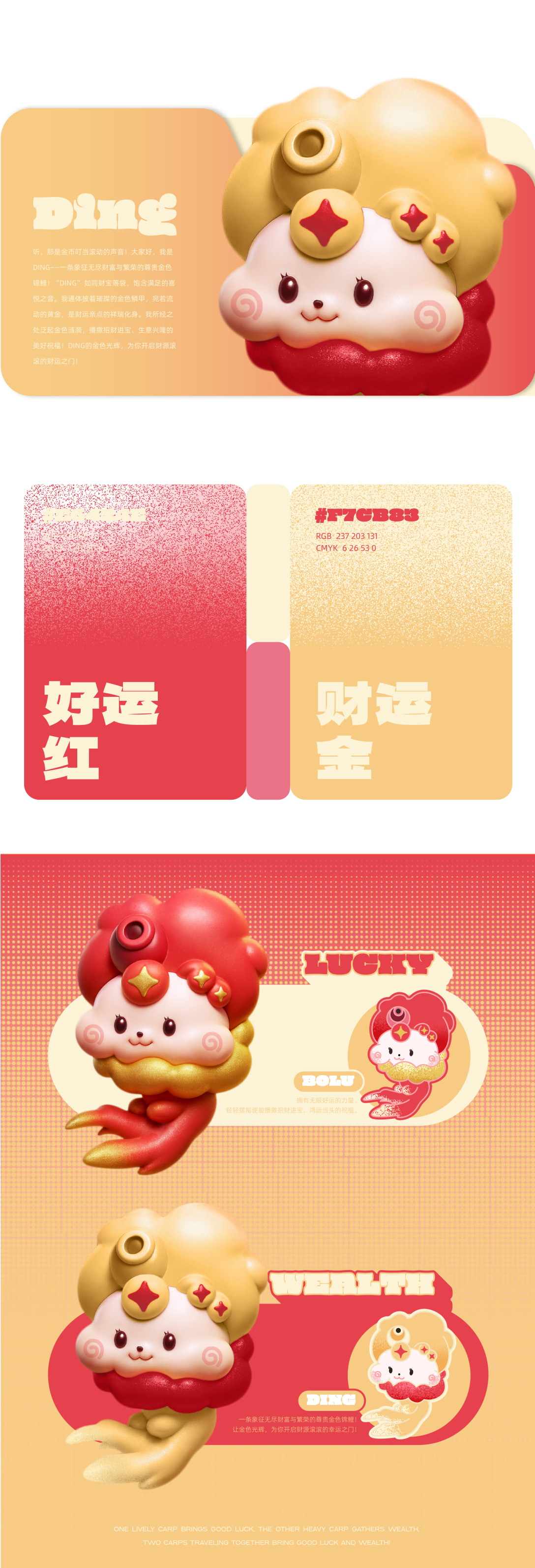 听,那是金币叮当滚动的声音!大家好,我是DING---条象征无尽财富与繁荣的尊贵金色锦鲤!“DING”如同财宝落袋、饱含满足的喜悦之音。我通体披着璀璨的金色鳞甲,宛若流动的黄金,是财运亲点的祥瑞化身。我所经之处泛起金色涟漪,播撒招财进宝、生意兴隆的美好祝福!DING的金色光辉,为你开启财源滚滚的财运之门!