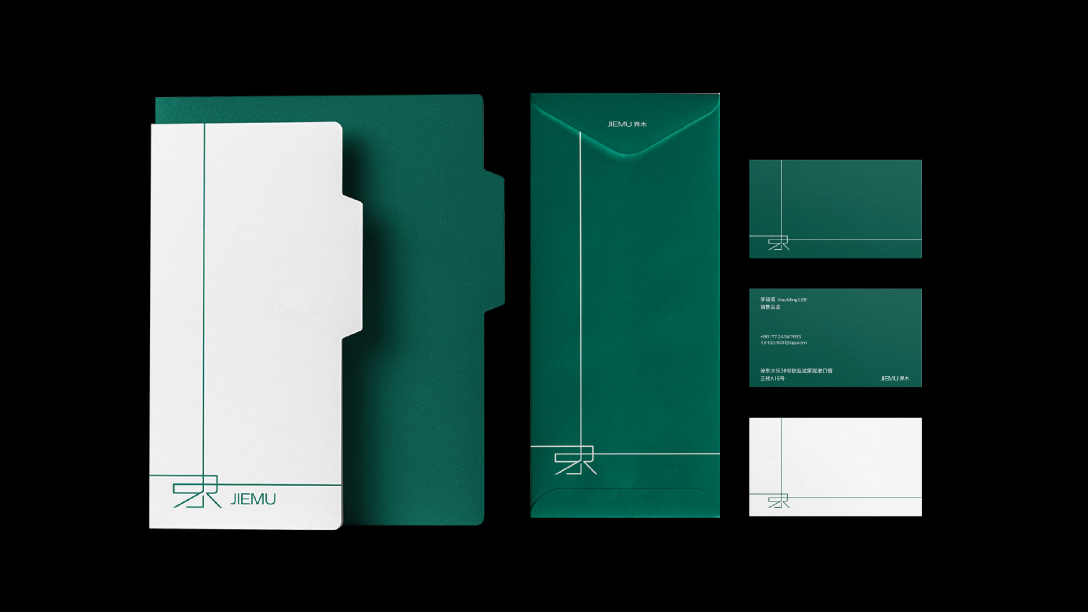 LOGO的整体以字体[界]为基础,整体字形由清朝书法家何绍基的隶书体[界]为原型进行演变设计。整体看似[界]也融合了字体[木]字,再将笔画以简约的线性结构表达,形成了现代、极简、轻奢的风格,与界木的设计风格“在平静中尽显优雅,在低调中尽显奢华”不谋而合。