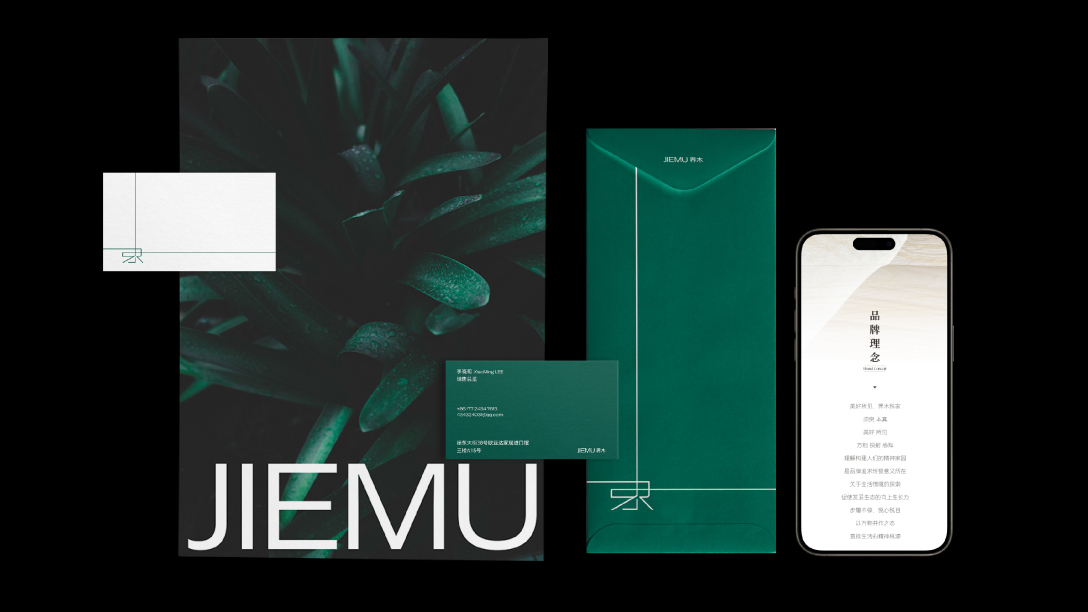 绿色的品牌色也象征着自然、静谧和环保,强调了界木使用环保材料制作产品,也让顾客们在规划自己未来的家时安心选择使用界木的定制家具。将[界]与[木]相融组合成的品牌符号形态在同行业的品牌视觉中也可以形成较大的差异化,在品牌向外输出理念的时候可成为强有力且独特的视觉识别符号,给消费者留下深刻的影响。