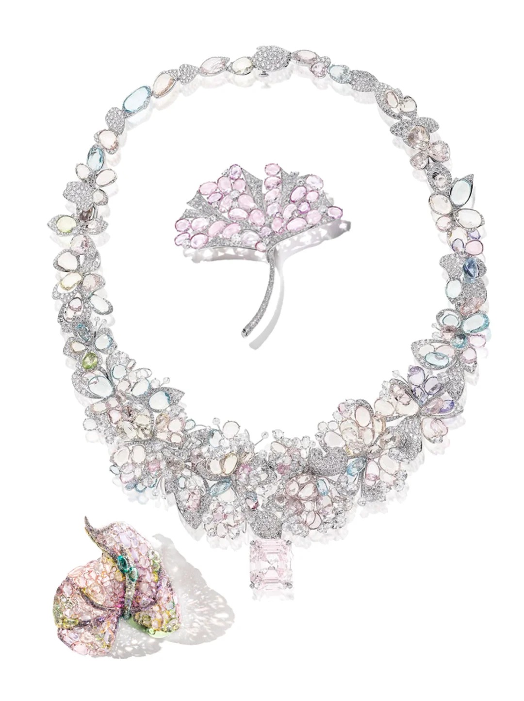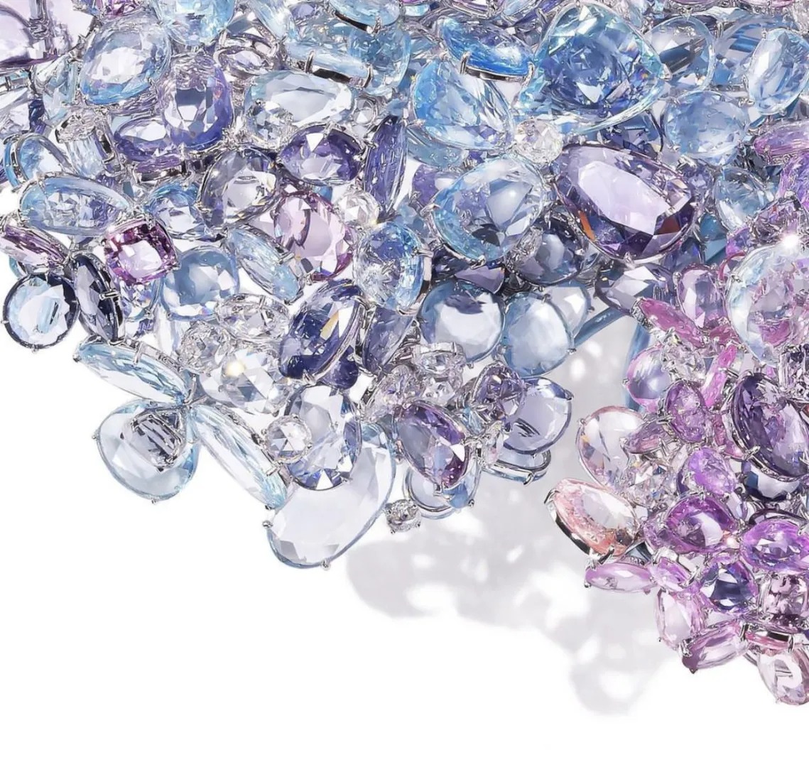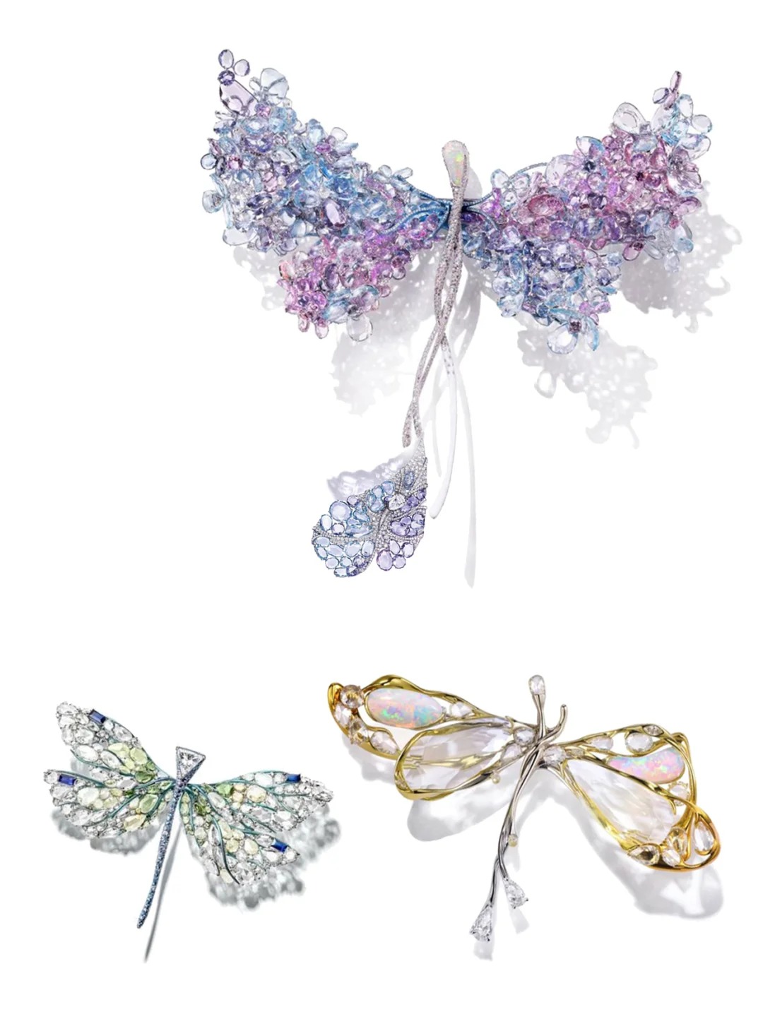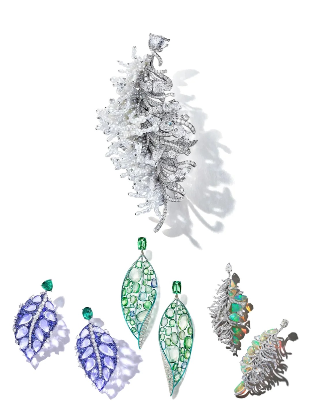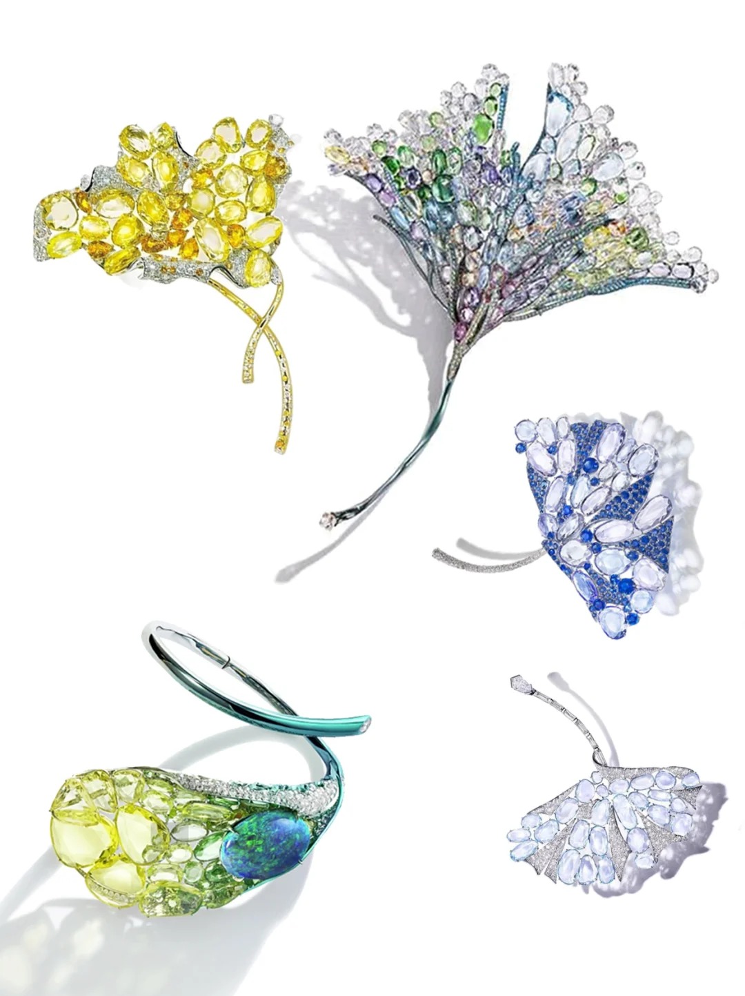 灵感:品牌以“以宝石入画”为创作理念,强调在三维空间里将光、影、色的斑斓,做到穿透性的极致,在凹凸起伏的微型空间里创造出如印象派画风的珠宝作品。 工艺:独创“Floating Set悬浮镶嵌”技术和“双面玫瑰切割”工艺,宝石选用厚度仅大约为1-1.2 mm,以特殊成分合金版和极微的鑲爪固定寶石,呈现悬浮视觉效果。