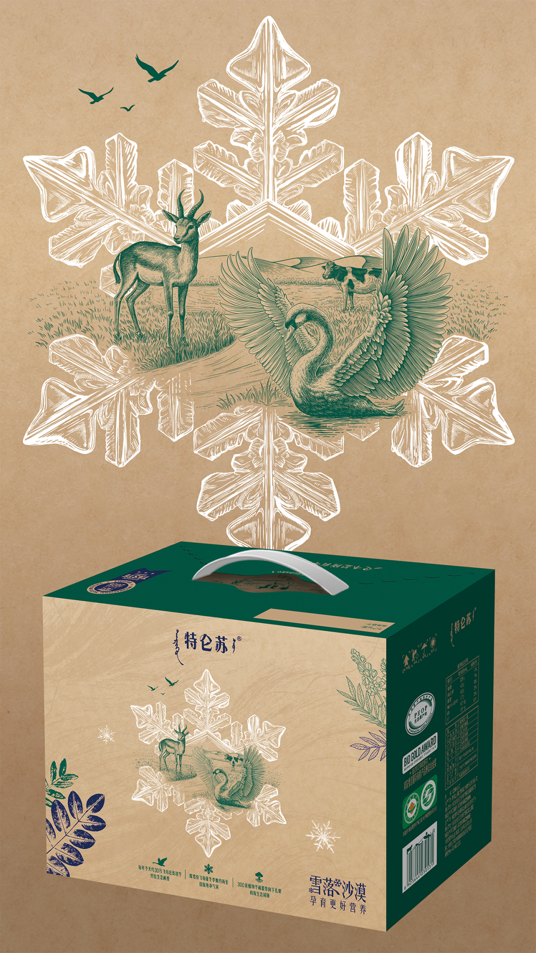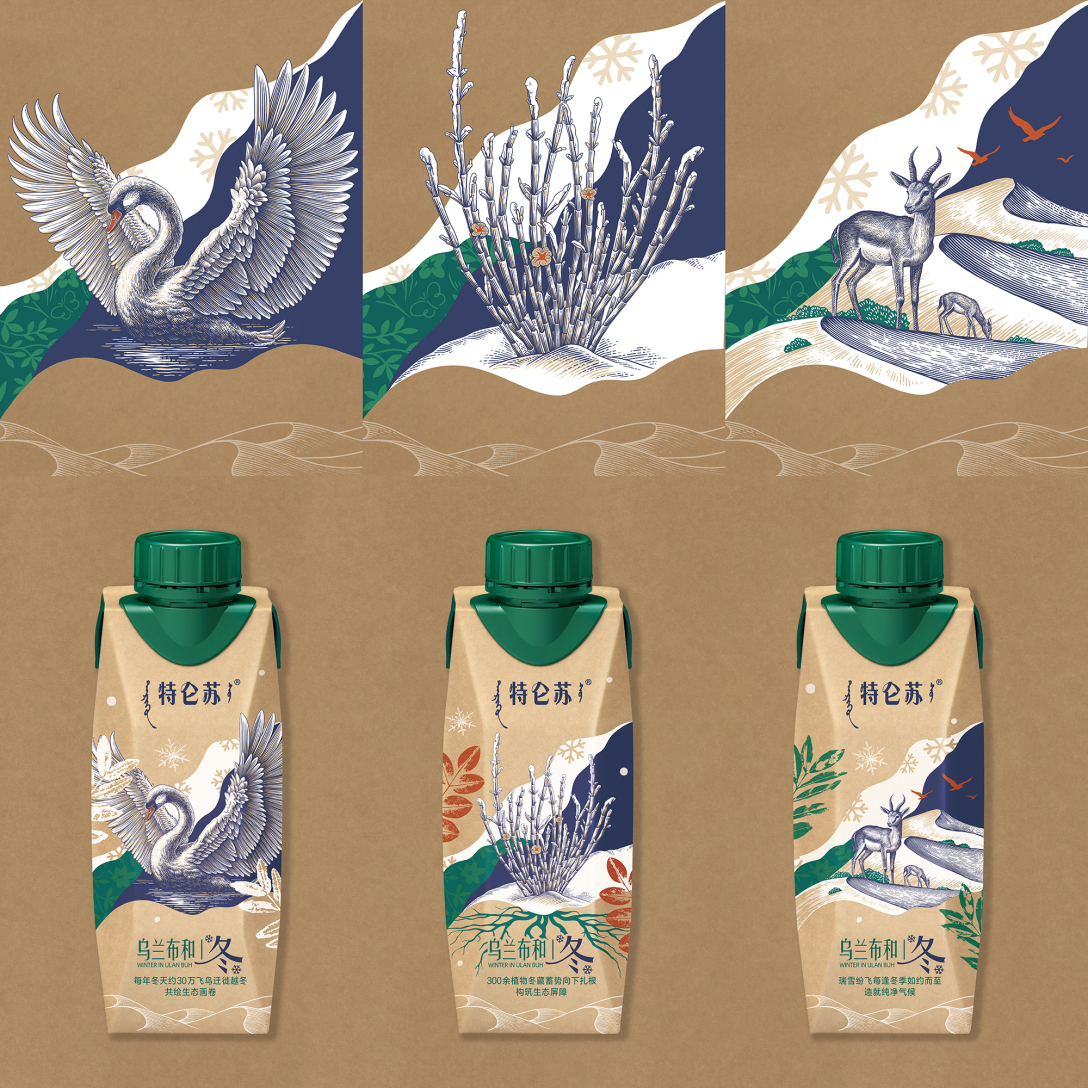 牛奶包装插画|天鹅、梭梭树、鹅喉羚