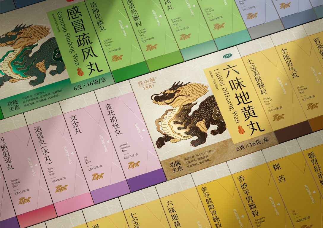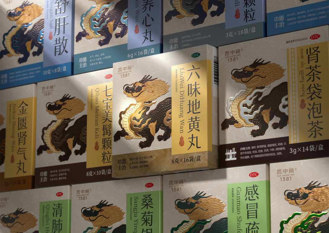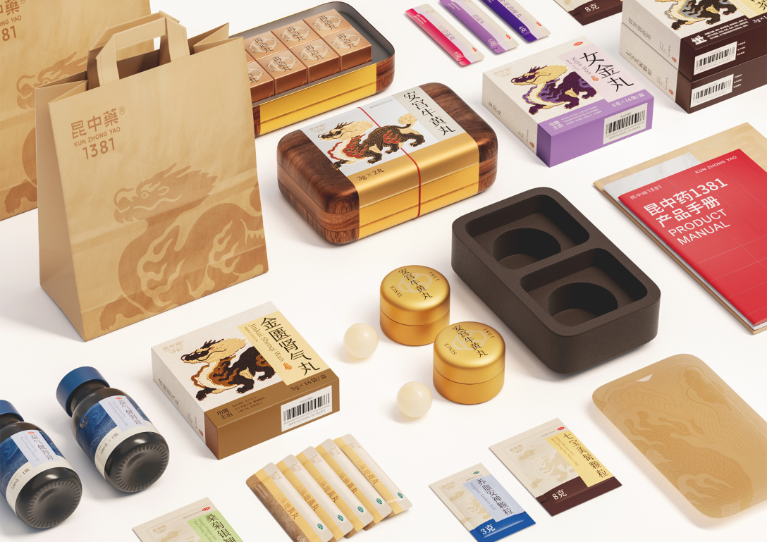 品牌符号与视觉 ·代表健康的品牌超级图形 ⽩泽,⻰⾸兽身,是中国历来象征智慧与健康的神兽。五⾊变体对应中医藏象理论,建⽴"五脏-五⾊"的视觉认知。 ·健康相关的的视觉语⾔ 中药柜(⽹格系统)+葫芦章(中医药⽂化)+红绳(吉祥)形成⽂化记忆点。