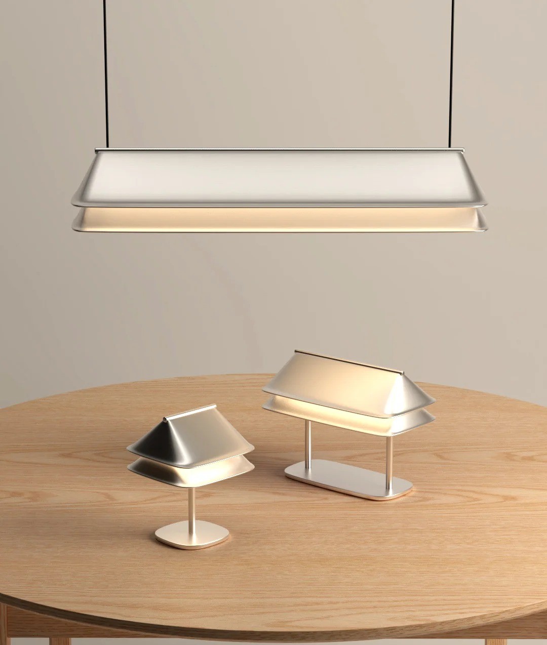 YEN 系列以东方建筑的屋檐为灵感,捕捉光在檐下停留的片刻。设计以弧线与层叠构筑出节制的秩序,雾面拉丝不锈钢折射出如雾的光泽,让金属的冷静转化为柔和的气韵。 在光与影的交界,YEN 以极简语汇重塑传统之形。它不只是灯具,更像是一片庇护的屋檐,为空间引入静谧的呼吸与安定的节奏。