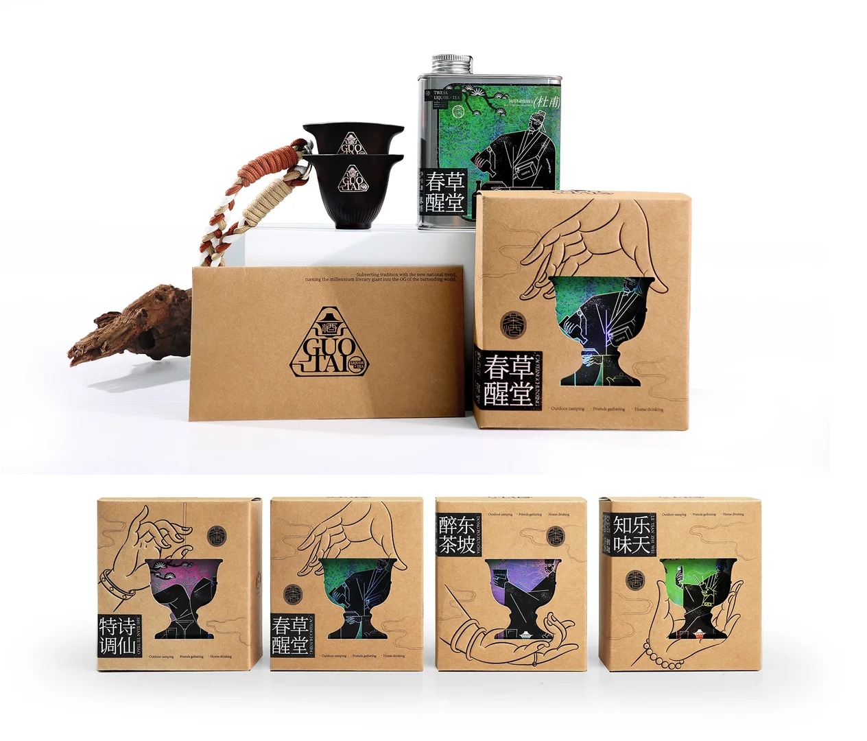 创意说明:这是一款融合中国诗酒文化与现代生活美学的创新茶酒包装,以茶为引,以酒成诗。
