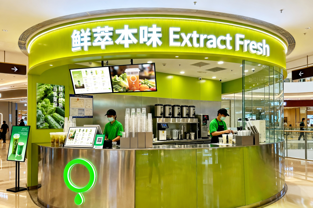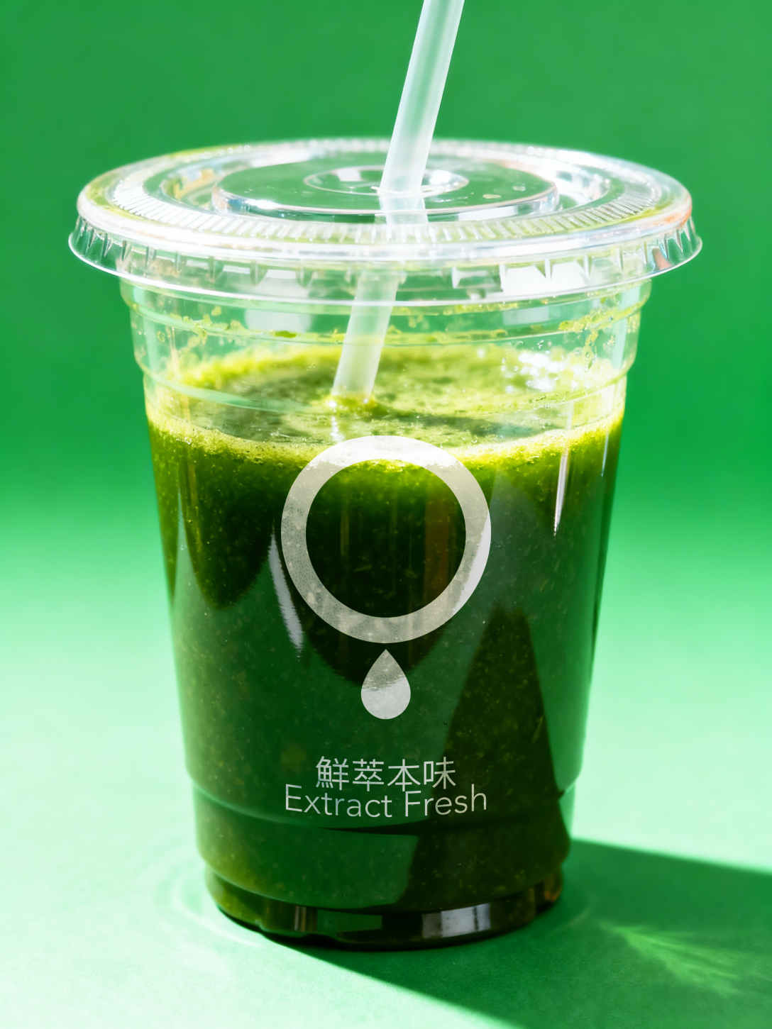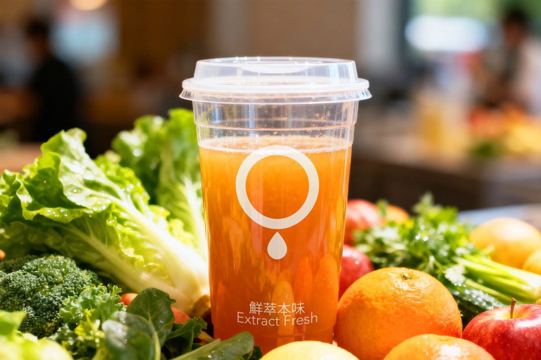 品牌标识以“环形+水滴”为核心符号,环形即是“完整、纯粹”的视觉隐喻 ,对应“无添加”的本真属性,也暗含“鲜萃工艺锁住完整营养”的理念。水滴是“果蔬汁夜”的直观表达,呼应“鲜榨”