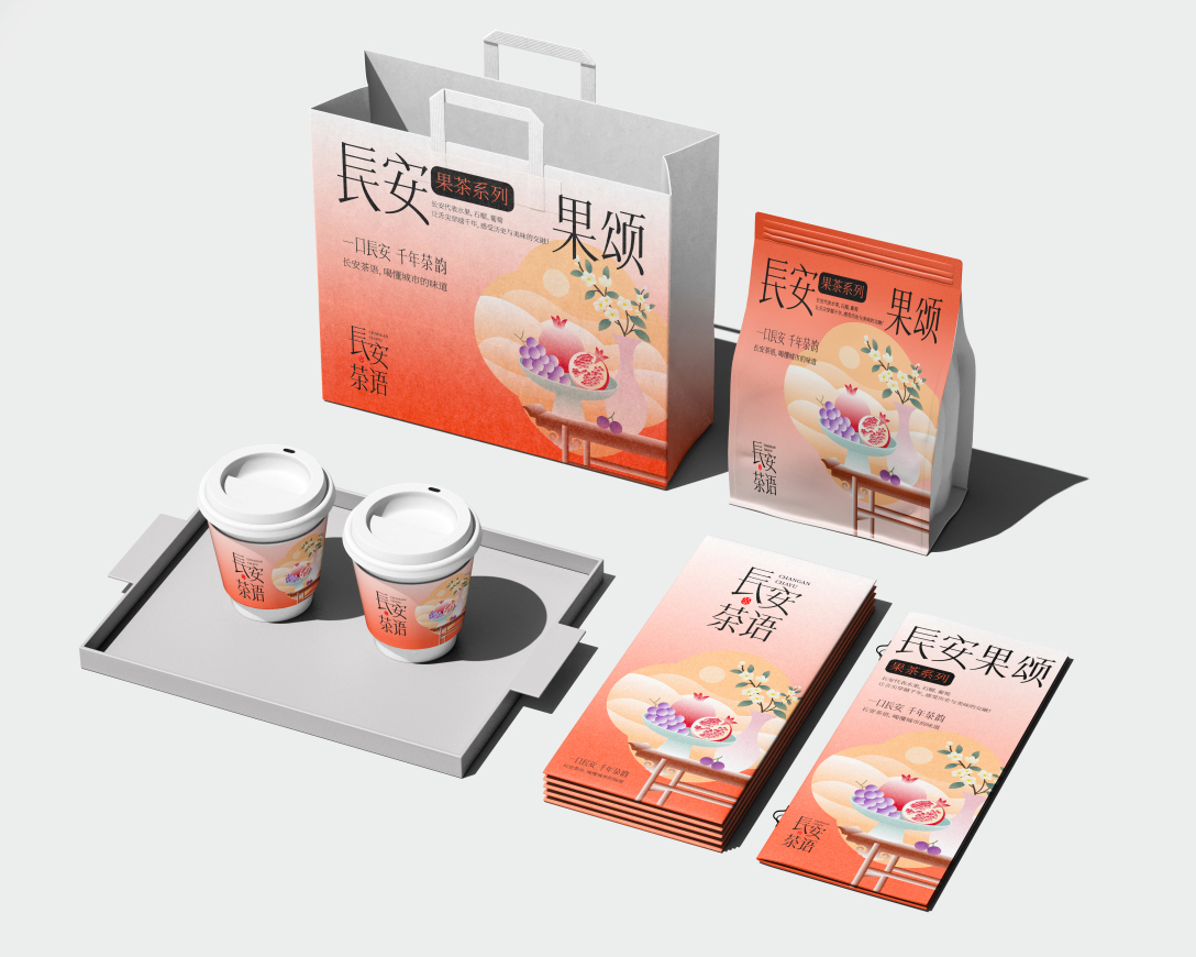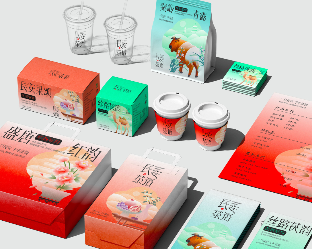 红茶系列:盛唐红韵(唐代国花牡丹,展现盛唐气象,呼应红茶醇厚口感) 绿茶系列:秦岭青露(以秦岭羚牛为生态背书,突出绿茶清冽特质) 水果茶系列:长安果颂(融合陕西特色水果,如临潼石榴、户县葡萄等) 茯茶系列 :丝路茯韵(源自丝绸之路的健康茶饮,是传统与现代碰撞的别样风味)