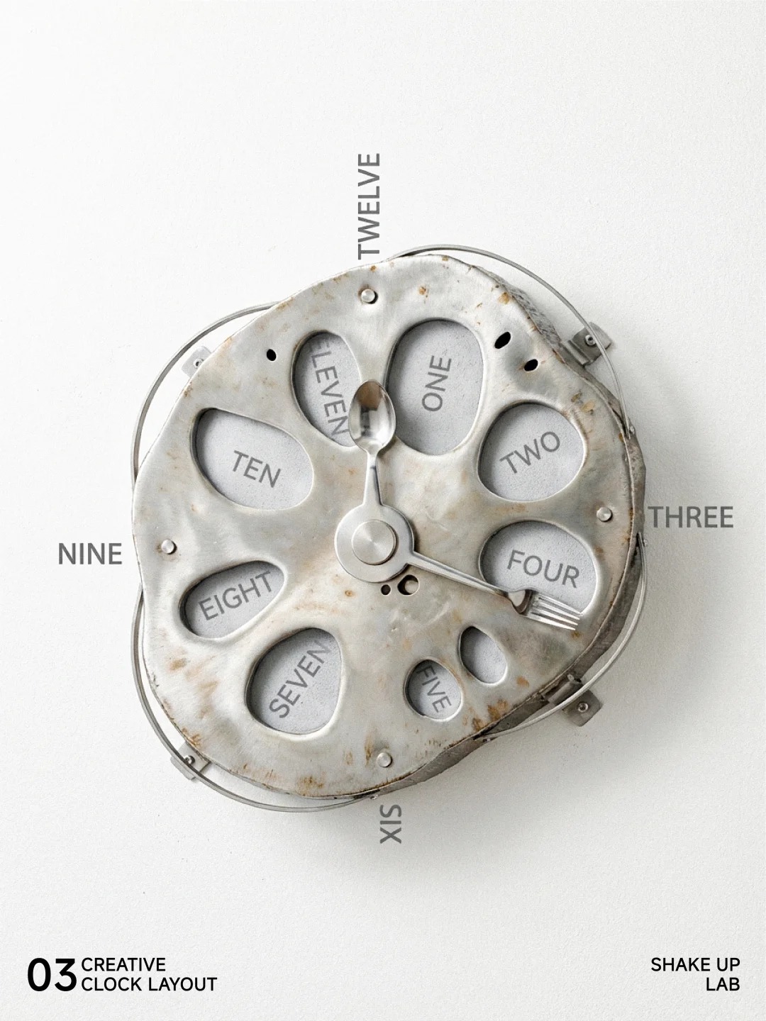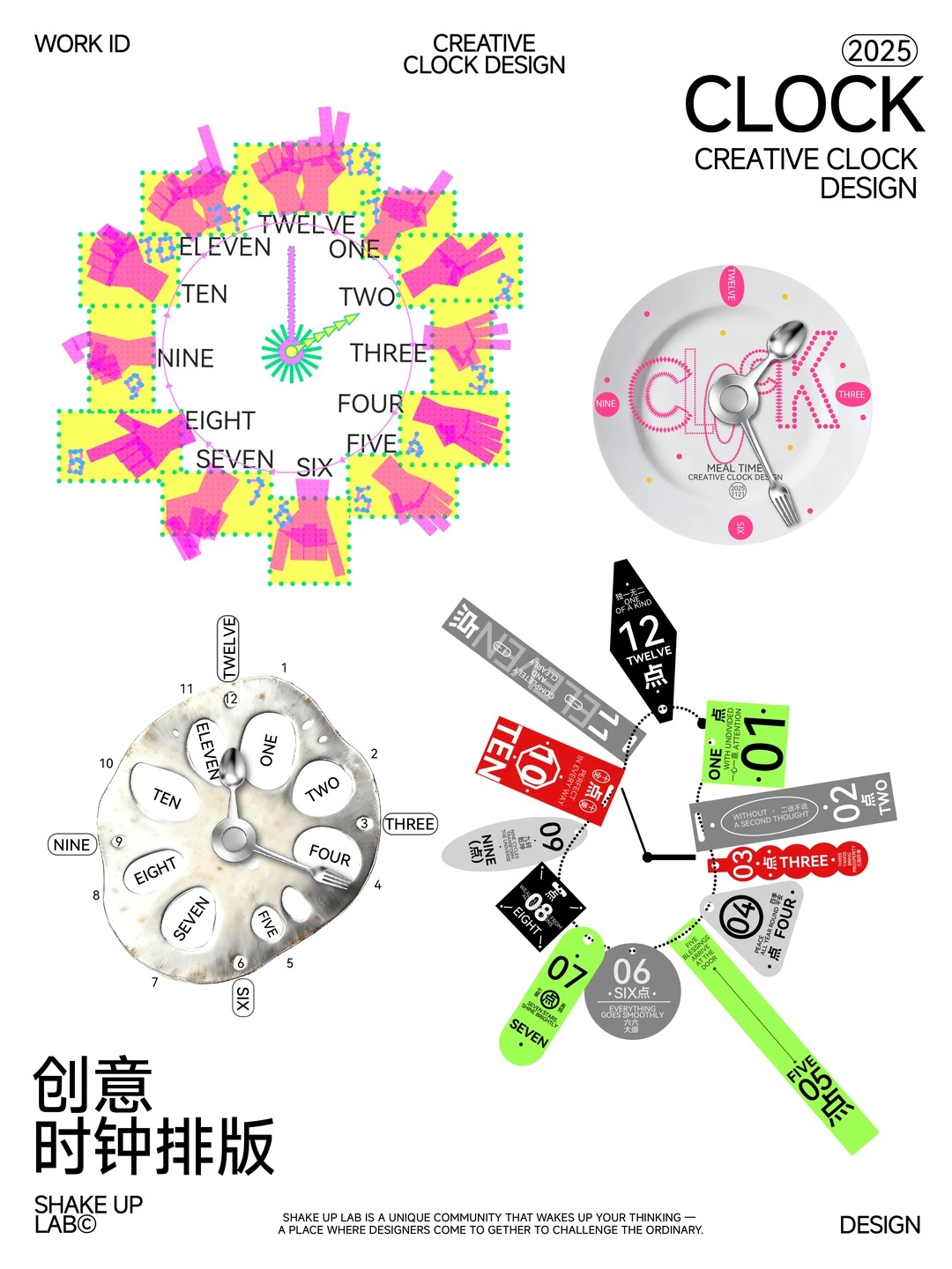 关于钟表的设计元素其实可提取的相当多,因为钟表往往会联想到时间,而时间的维度里又可以包含万物。 所以一切元素运用到钟表的设计里似乎都是成立的,本期在有限的篇幅里尝试了手势、餐盘、金属元素甚至钥匙扣的融入。 其实可延展的素材还非常多,如果作为设计师的你喜欢,可以尝试用不同的元素来组合看看。