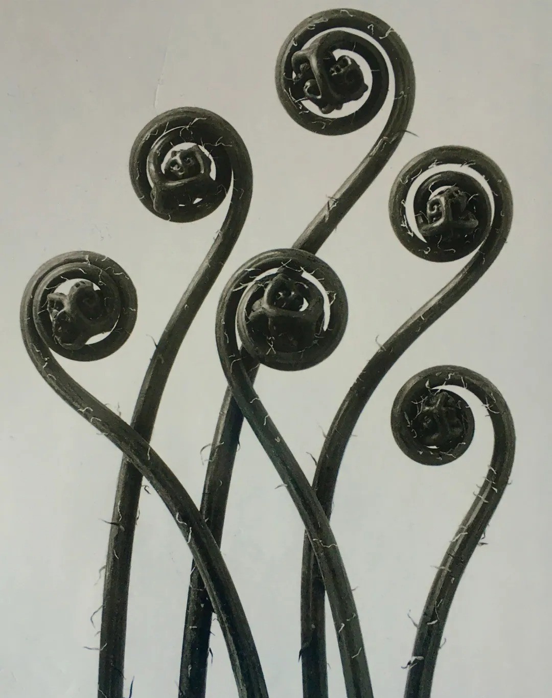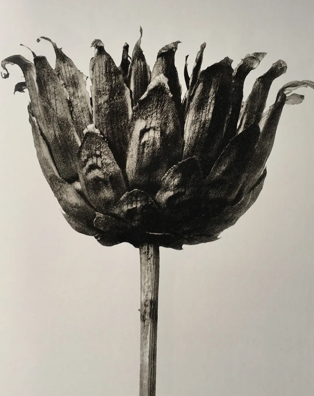 卡尔·布洛斯菲尔德(Karl Blossfeldt,1865-1932)是一位以其开创性植物摄影而影响深远的德国摄影师、雕塑家与艺术教师。他最初拍摄植物的目的极为纯粹:为他在柏林工艺美术学校的学生们提供观察自然形态的模型。为此,他甚至自制了一台能放大植物高达45倍的相机,以科学标本般的精确度,捕捉花茎、叶脉、种子荚等部位的微观细节。这些在均匀光线下、以简洁背景拍下的照片,剥离了植物的色彩与生机,却将其结构以一种前所未有的、近乎建筑与雕塑的形式感凸显出来。