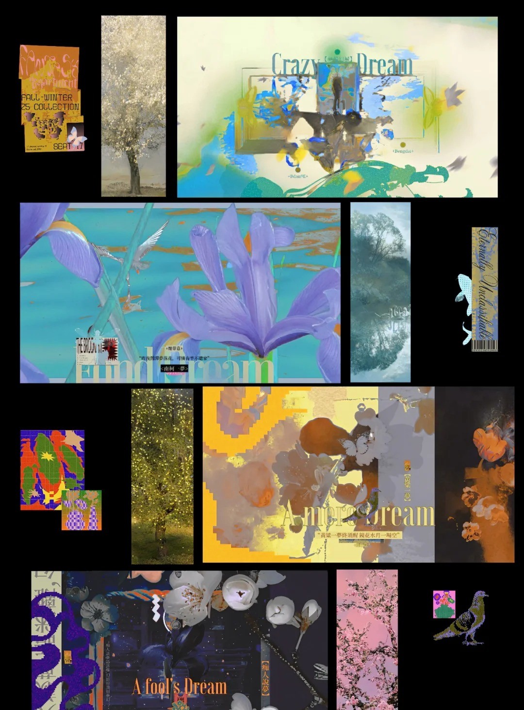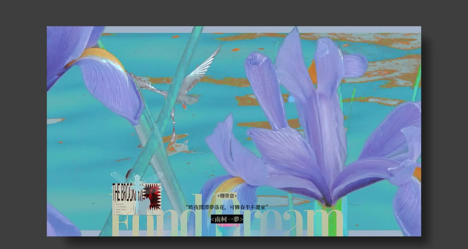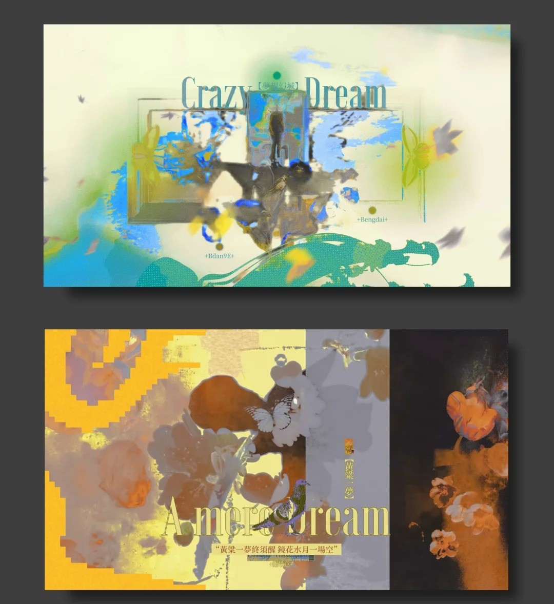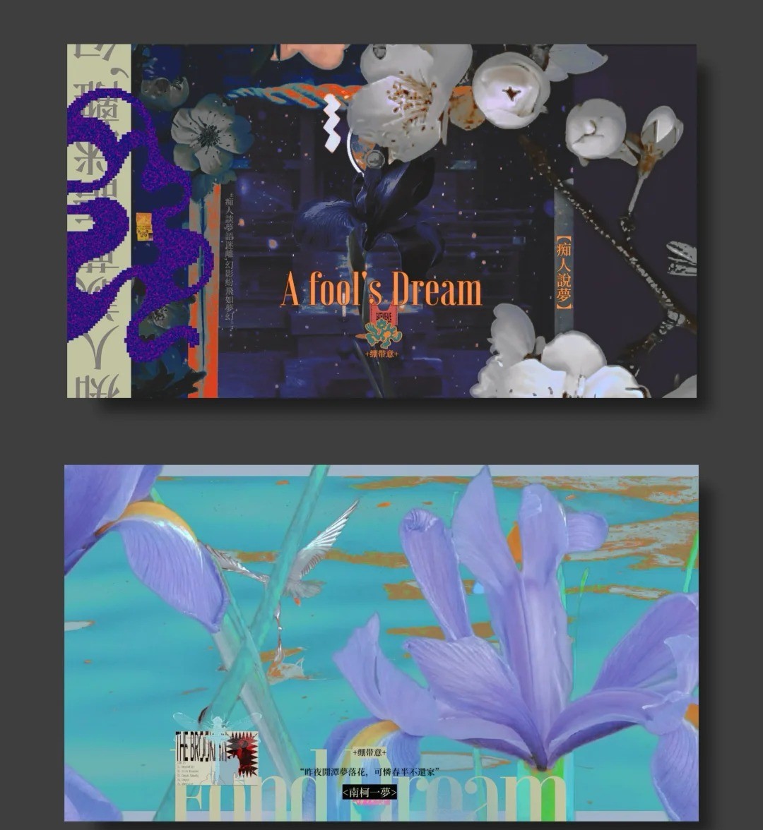 同样,我在作品中融入传统中国元素,比一作更加委婉意境,梦中总是无法触碰的幻觉,通过诗景尽可能地结合现代艺术展现出来,展现其梦的一面。