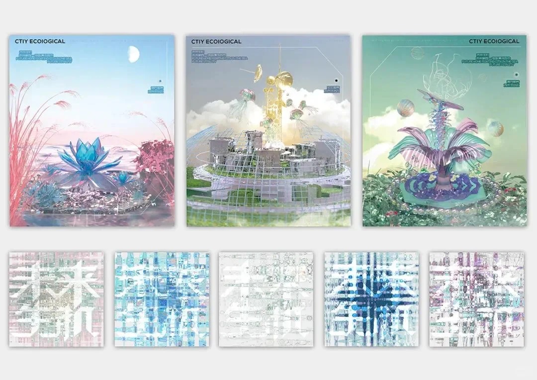 导师评语:作品《未来生机》,设计团队依托当下城市及自然环境的基础数据,建立了一个未来科技城市,以生态关系为切入点,以未来的植物智能的现有研究为基础,其中城市包括了现有的城市所需的几个工作区域,在这样的城市观中设计新型的杂交植物,与城市共生,解决城市的生态问题。以未来感的杂交植物作为基础图形,提取基本植物的特征进行设计,用三维模型表现植物和城市,主视觉风格以浅色和渐变为主,三维的城市、植物模型和平面视觉、排版结合、交互和物料等的一系列衍生品等为《未来生机》构建了理想愿景。项目方案不仅具有“时代性”,更是让人们关注未来……