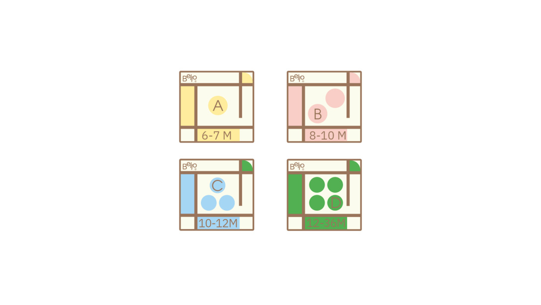灵感源头,是母婴场景里最戳人的安全感一一婴儿床围栏。我们没有做复杂的造型,而是提炼围栏的线条语言,勾勒出一方简约的方形几何轮廓。这种线条的简约感,恰好契合品牌追求的松弛调性,没有多余修饰,就像妈妈对宝宝的守,纯粹又直接;而方形的稳固感,也暗合妈妈看到宝宝在婴儿床中时的安心感,让标志天生带着"靠谱"的气质,刚好匹配品牌"家长省心知己"的角色定位。
