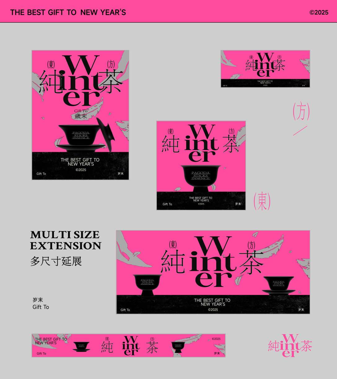 本次活動以“東方純茶”爲内核,打破茶文化厚重刻板的舊印象,通過粉色與黑色的視覺張力,重構茶事的年輕化表達——讓古老茶香跨越時空,在數字時代焕發新生。 黑色奠定新中式基調,粉色注入年輕活力,形成視覺記憶點,符合Z世代審美與傳統文化的創新融合需求。
