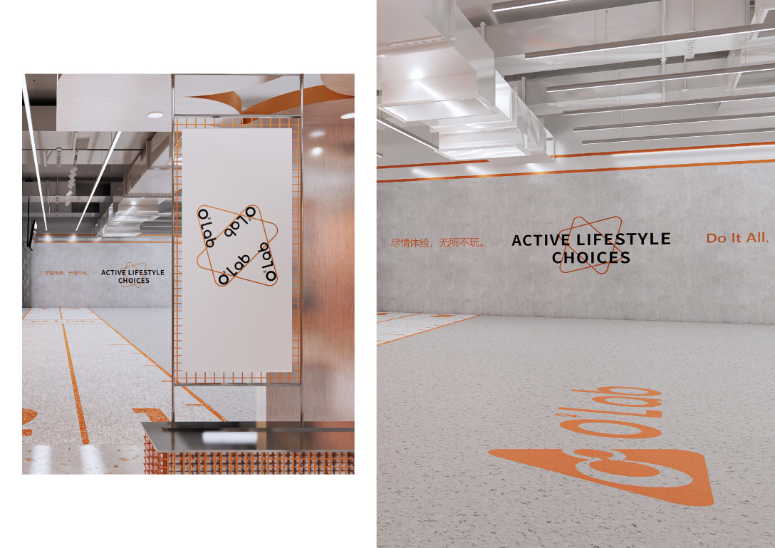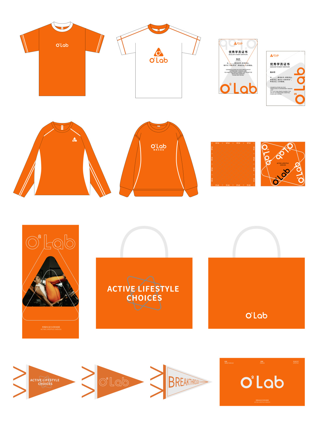 标准字字形以“O”为基础图形拓展出简约的无称线体字形,将“O₂”标准化学式变形为“O²”,则有“裂变”和“成为场地”的用意。橙色代表热情、活力与乐观,渲染O²Lab橙氧实验室阳光、趣味且友好的社群氛围,并传达橙氧实验室作为正能量和积极生活方式传播者所自带的高能磁场。