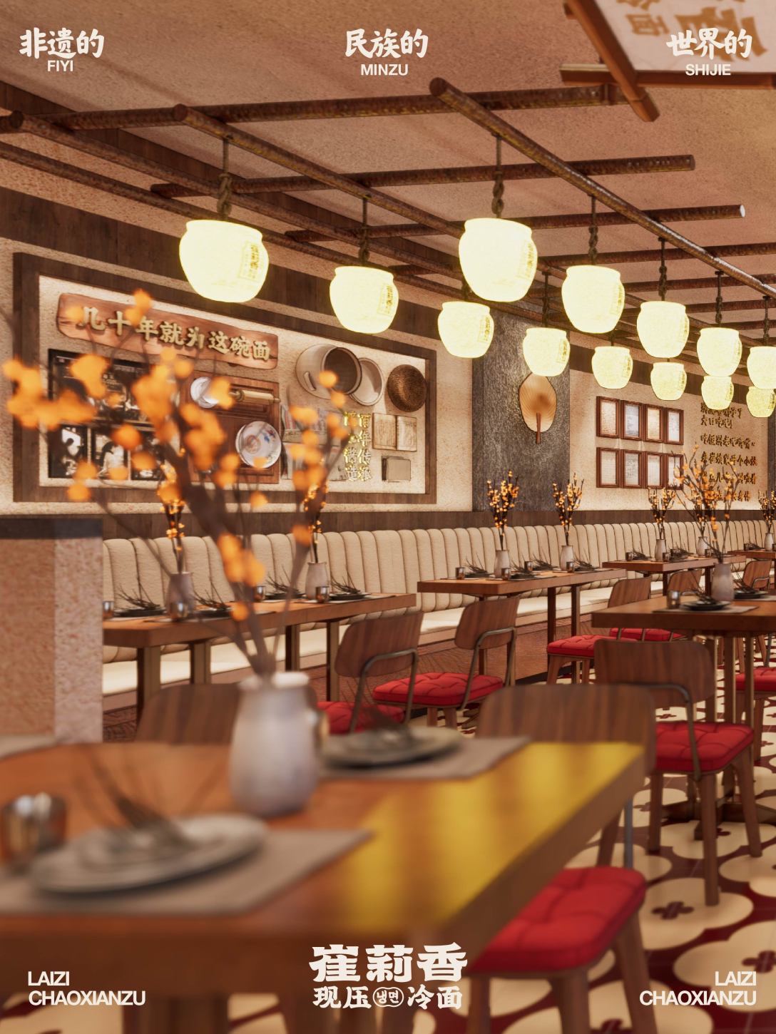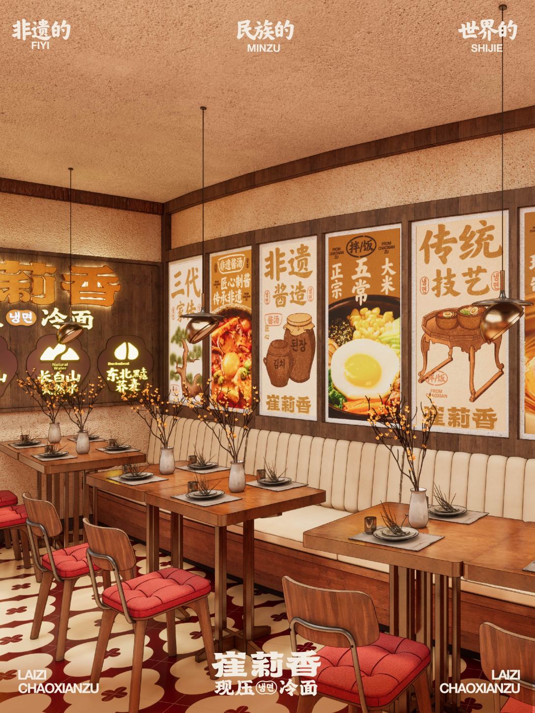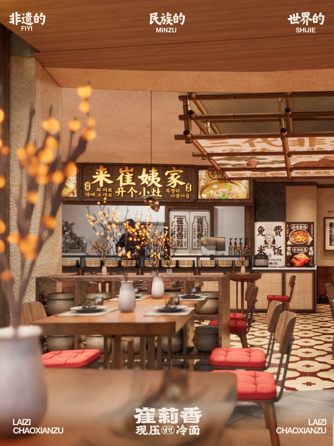 提炼“传家宝”的概念,用真实家里的物件作为软装物料, 展示朝鲜族的文化,强化空间的氛围营造; 场景感拉满,一秒到延吉,感受都市森林里家的温度与味道。