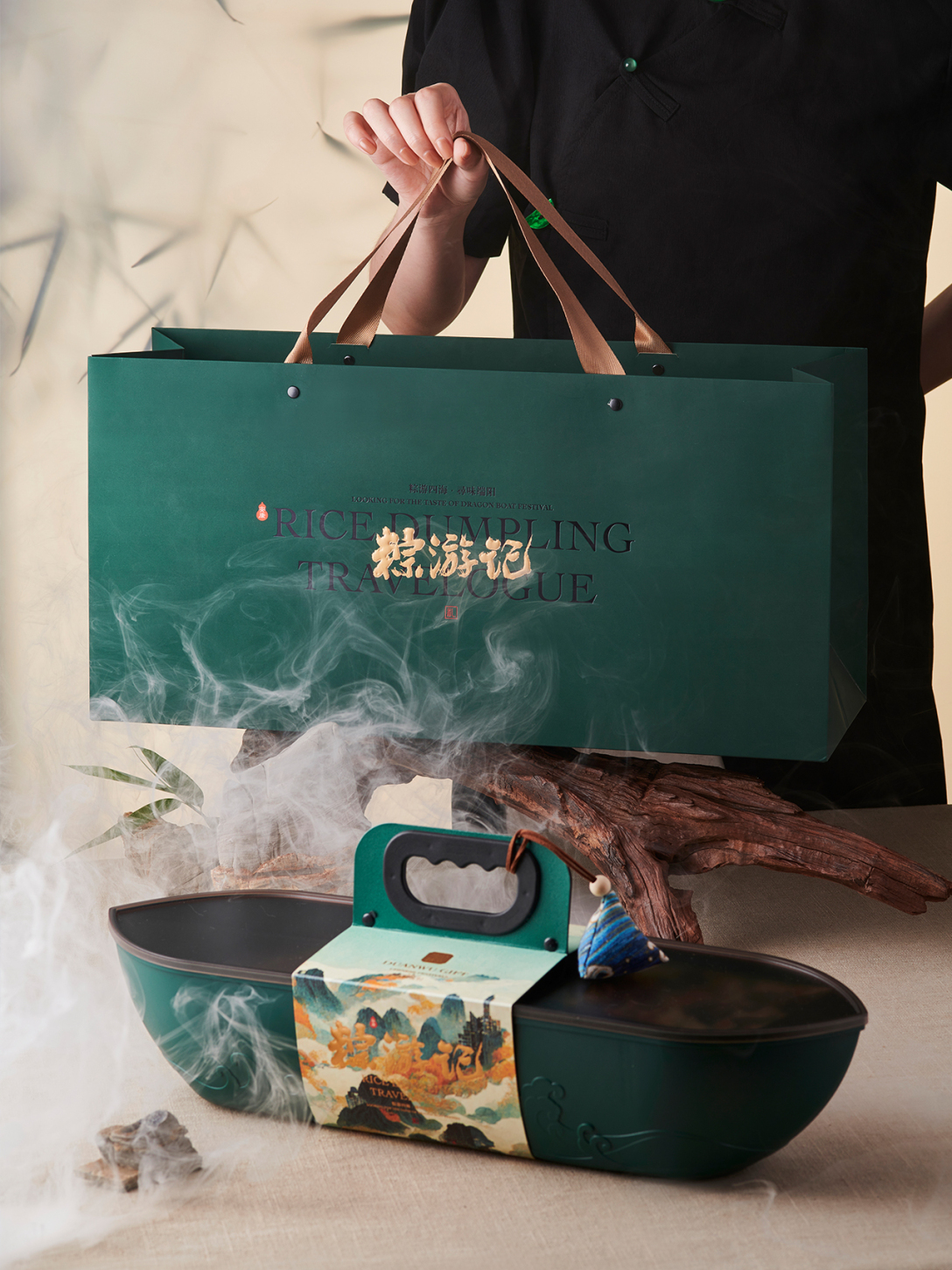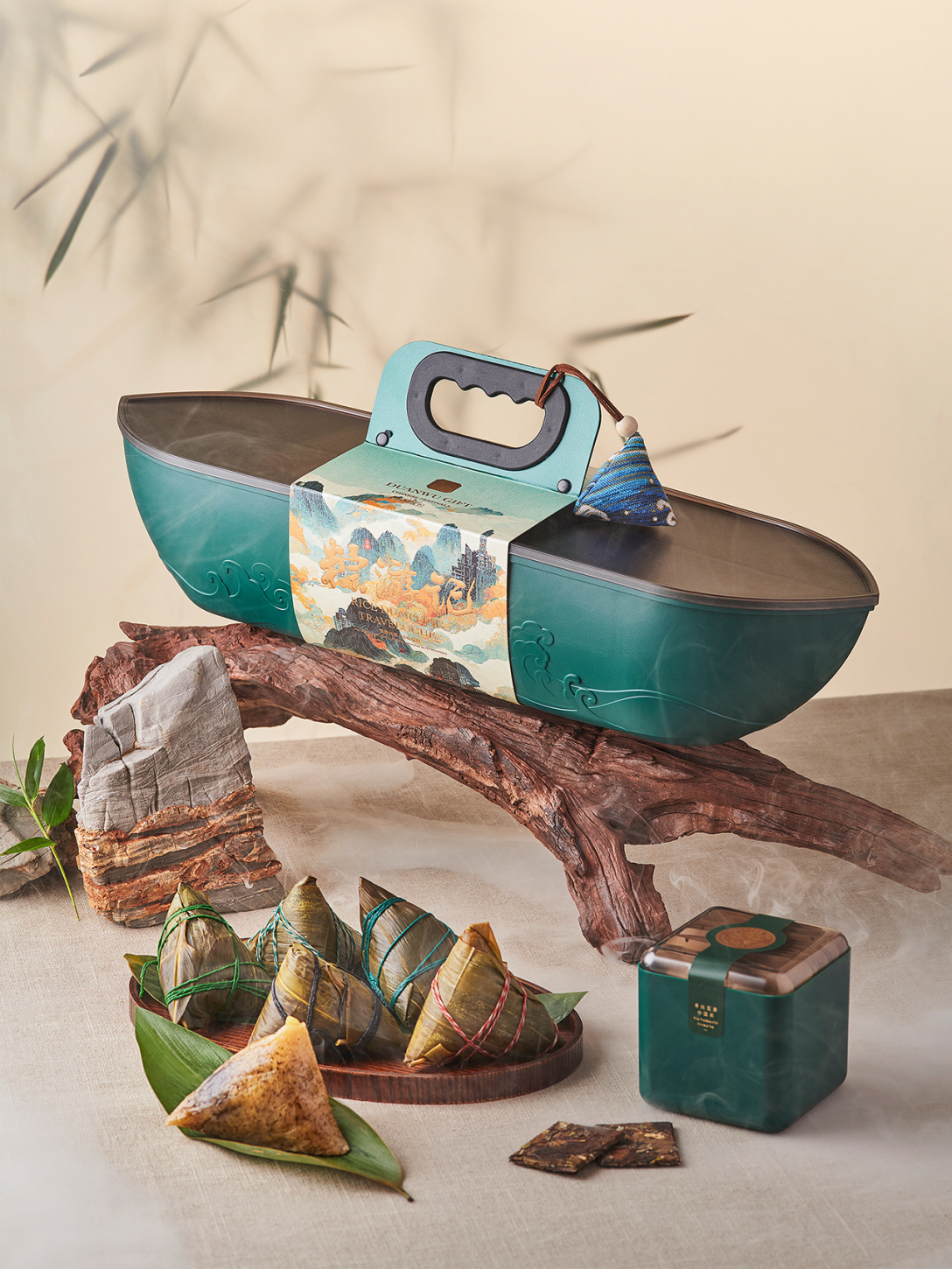 结合端午风俗弘扬龙舟文化,将礼盒设计为龙舟造型,有纵横四海之韵。在礼盒设计上融入多功能茶台的创意理念,让这款礼盒更具实用性。