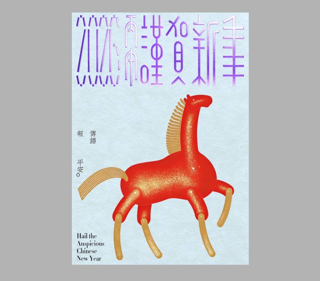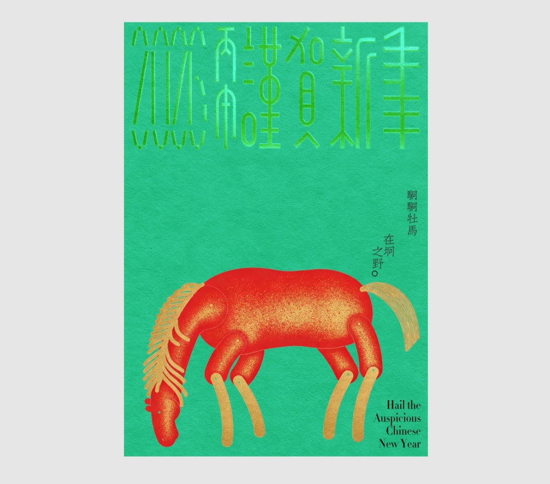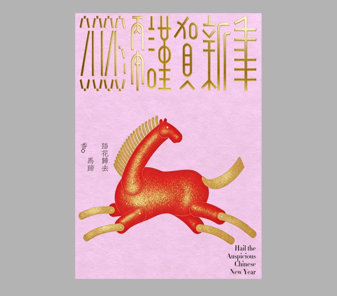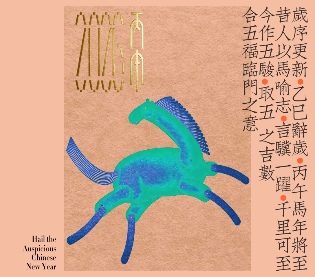 岁序更新,乙巳辞岁,丙午马年将至。 昔人以马喻志,言 “骥一跃,千里可至”, 今作五骏,取 “五” 之吉数,合 “五福临门” 之意。 图中五骏,或昂首嘶鸣,或踏云奔腾,姿态各异,神骏飞扬。 融汉唐石刻之雄浑,亦取当代构成之灵动,兼具力量与雅韵。 以此《五骏贺春》愿各位朋友新岁如骏马驰骋,前程无碍,万事顺遂,马到功成。
