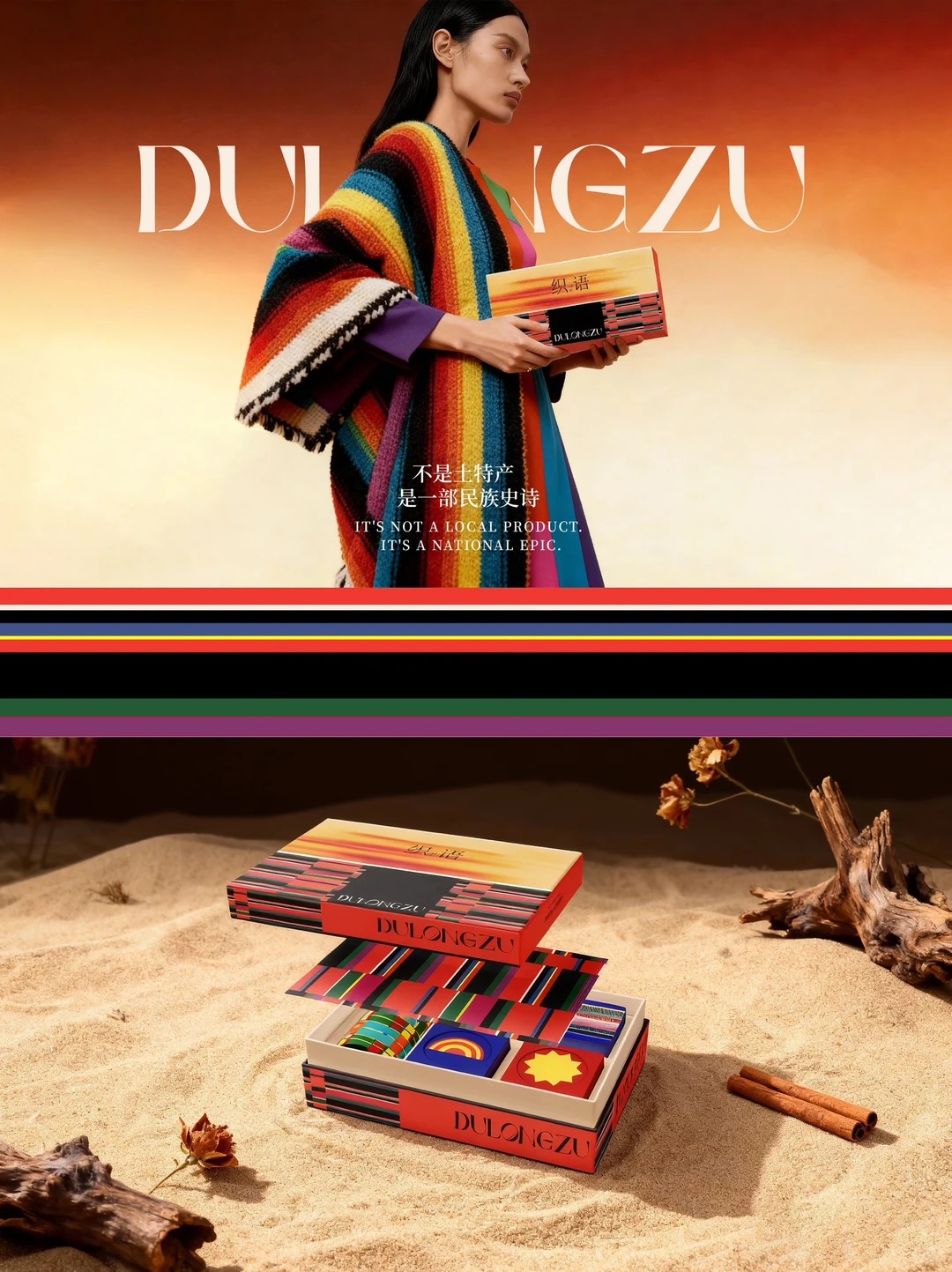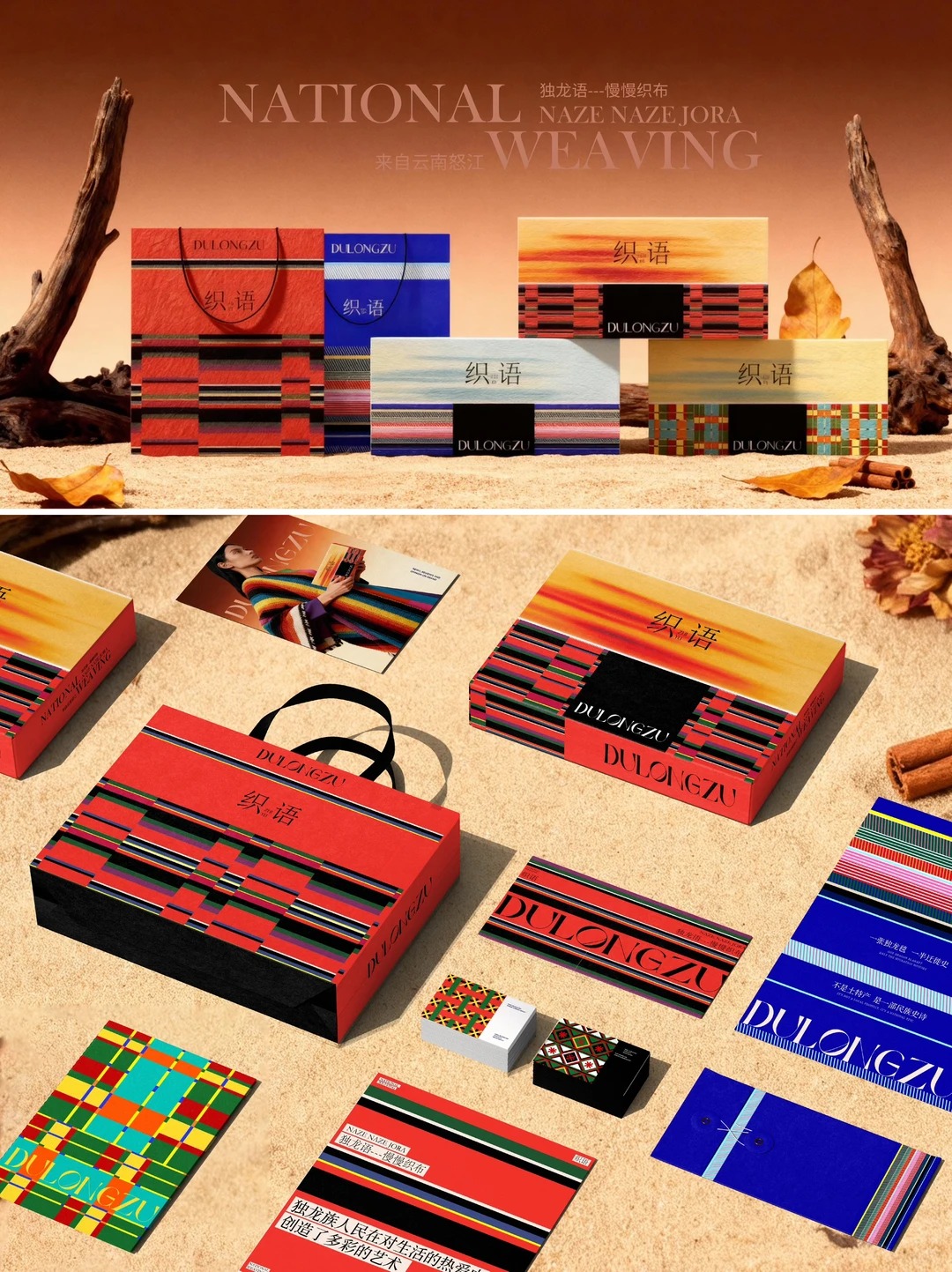 通过国际主义风格结合独龙毯的色彩、构成的现代设计,独龙毯本身极具现代转化的基因,这种强烈、几何化的视觉语言,很适合现代设计(尤其是时尚、家居、平面设计),展现中国少数民族文化的时尚张力和现代价值。摆脱“小众非遗”的认知局限,以清晰的视觉符号建立独龙族文化的大众识别度