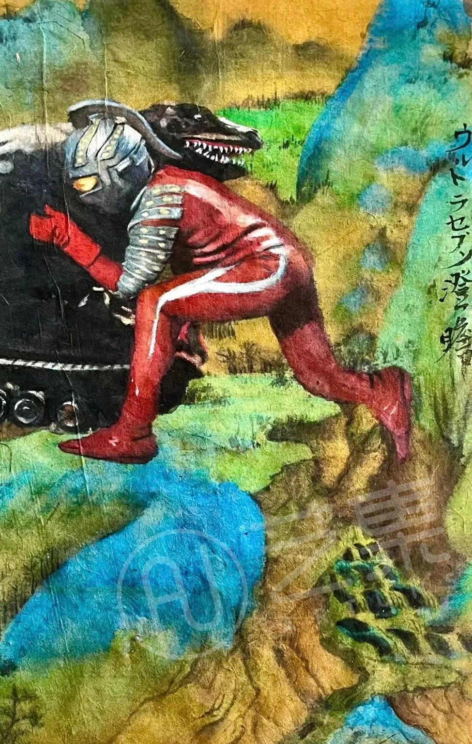 艺术混搭!明清山水的灵动浪漫碰撞奥特曼、怪兽的皮套粗质感,中国风和昭和感碰撞。