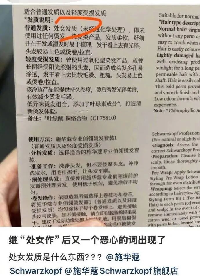 要知道,这可不是近期第一个栽在 “处女” 二字上的品牌!之前施华蔻一款烫发产品,直接把 “未经过化学处理的头发” 翻译成 “处女发质”。