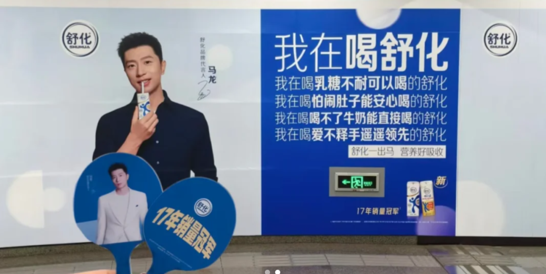本以为 “单字轰炸” 已经是极限,结果舒化直接玩起了新活,找代言人马龙拍了组 “扩句式” 地铁海报。画面里马龙穿白衣服骑白马,帅是真帅,但旁边的文案让人笑到打鸣 ——马 马龙 马龙出马!!!