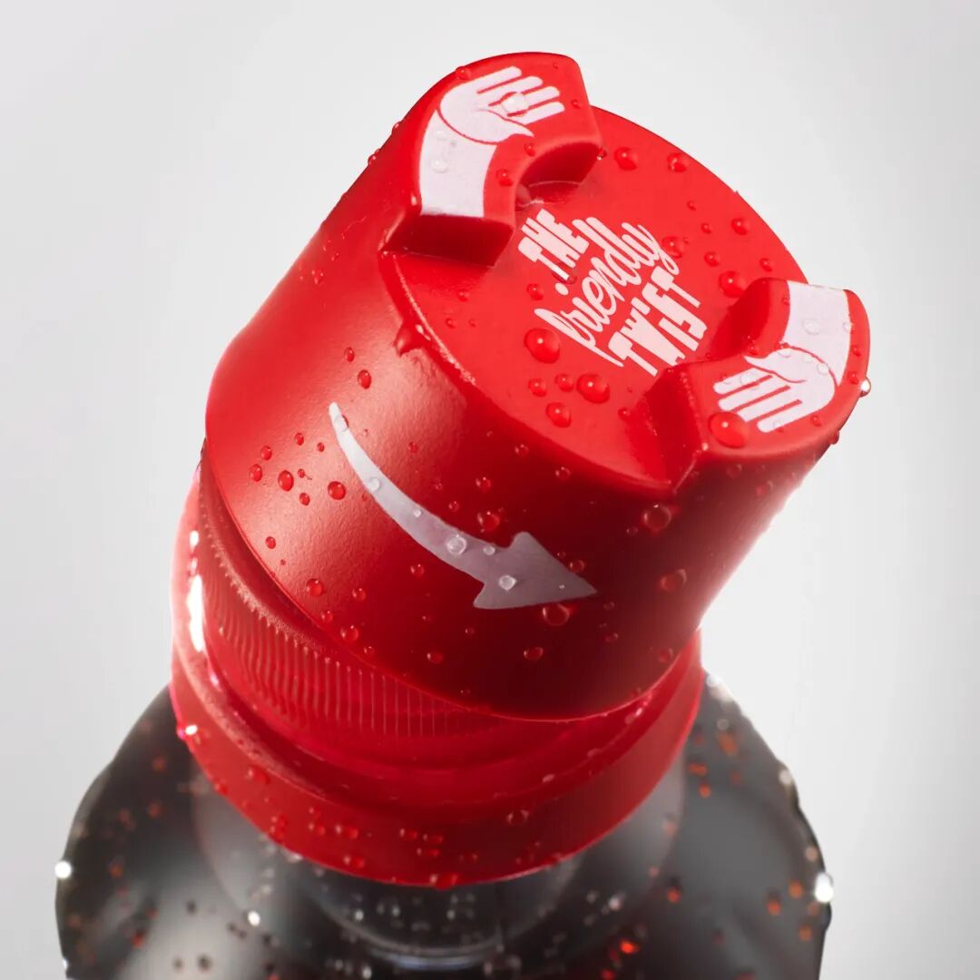 最大的不同是,这种可乐一个人打不开。想要喝可乐,你得找另一个买到同款可乐的人,两个人一起转动瓶盖,才能打开可乐瓶。