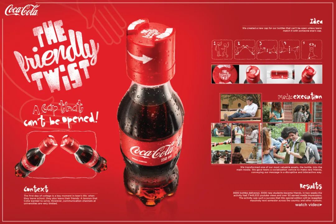 可口可乐这个“友好瓶盖”活动可谓四两拨千斤,成功地用最小的成本,撬动了最大的社交话题,成了当年营销界人人必看的经典案例。