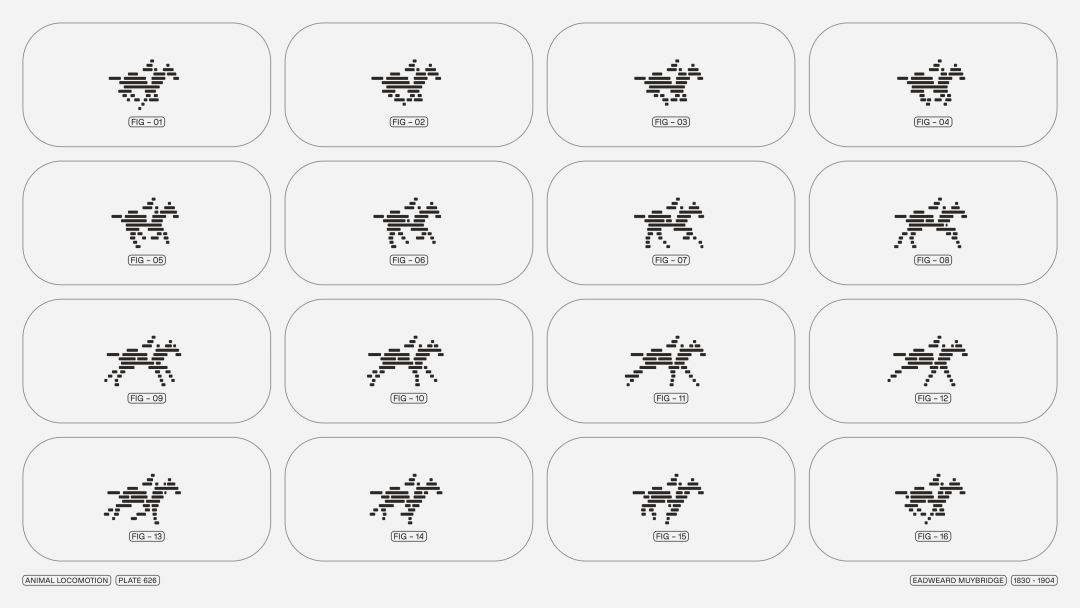 新的品牌LOGO是一匹不断奔跑的数字骏马,这匹马的设计灵感源自Muybridge的早期动态影像研究,象征着该公司自身的前进能量。Pentagram将骏马图形模块化、立体化,使它能在布局中流动,在命名系统中呼应模型架构,在品牌体系中带来节奏感。
