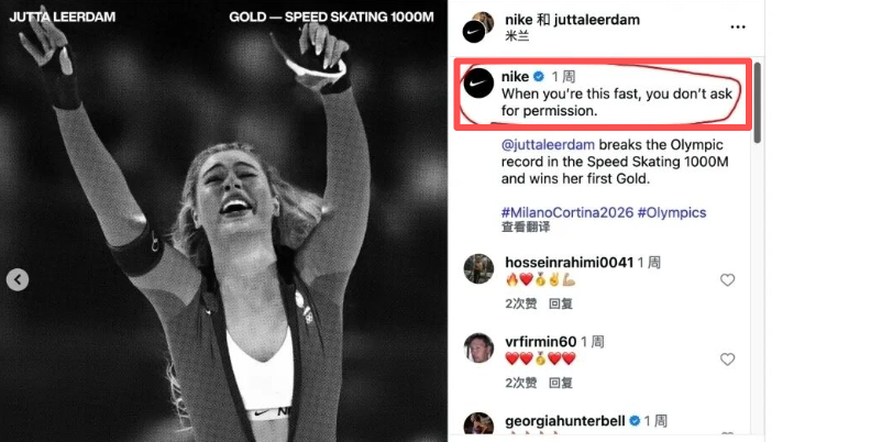 谁看了不说一句耐克赢麻了?!把品牌和冬奥高光时刻死死绑定。尤塔本身手握620万社媒粉丝,再加上全球媒体疯传简直血赚不亏。